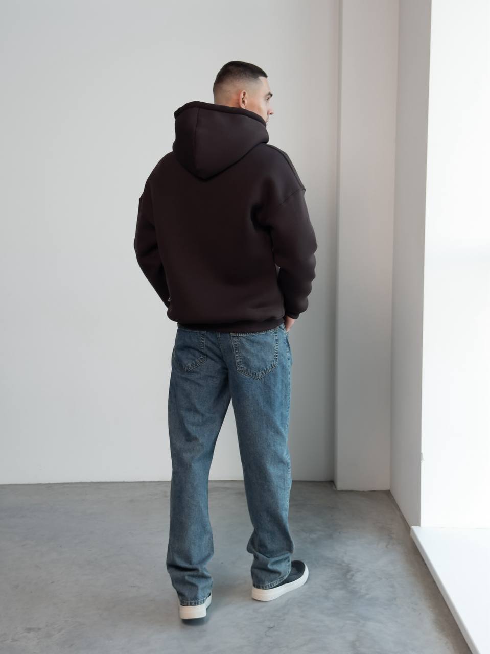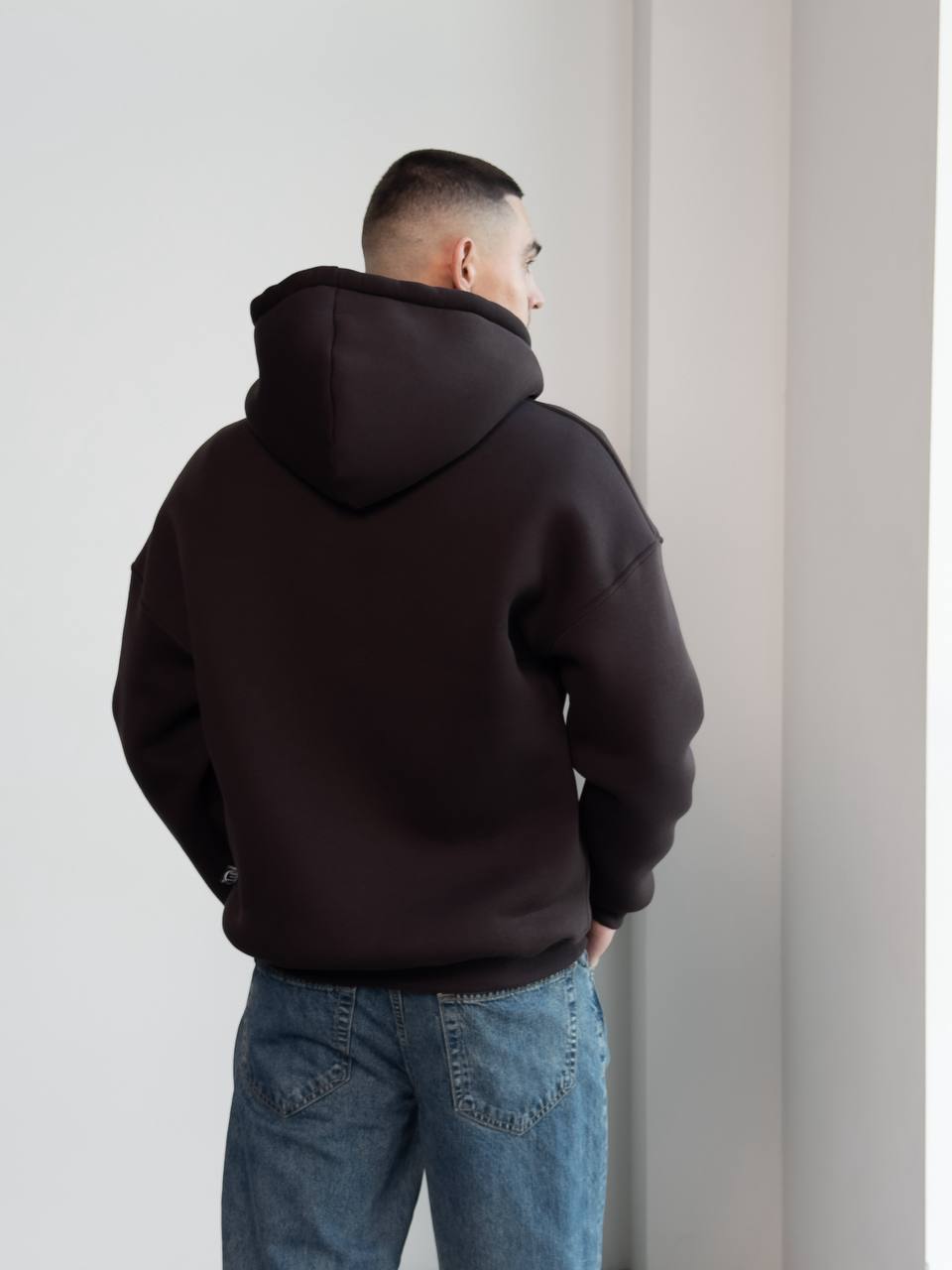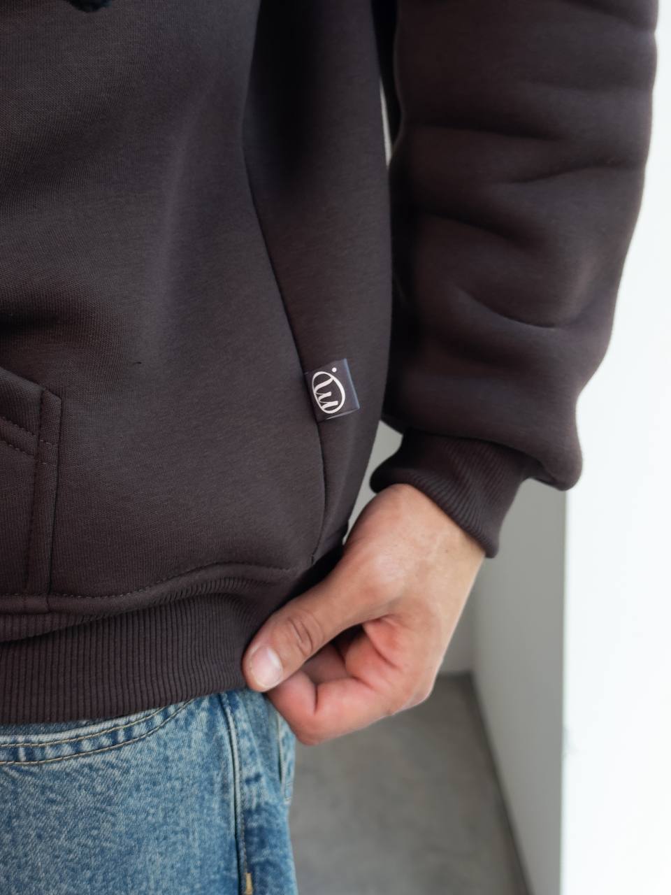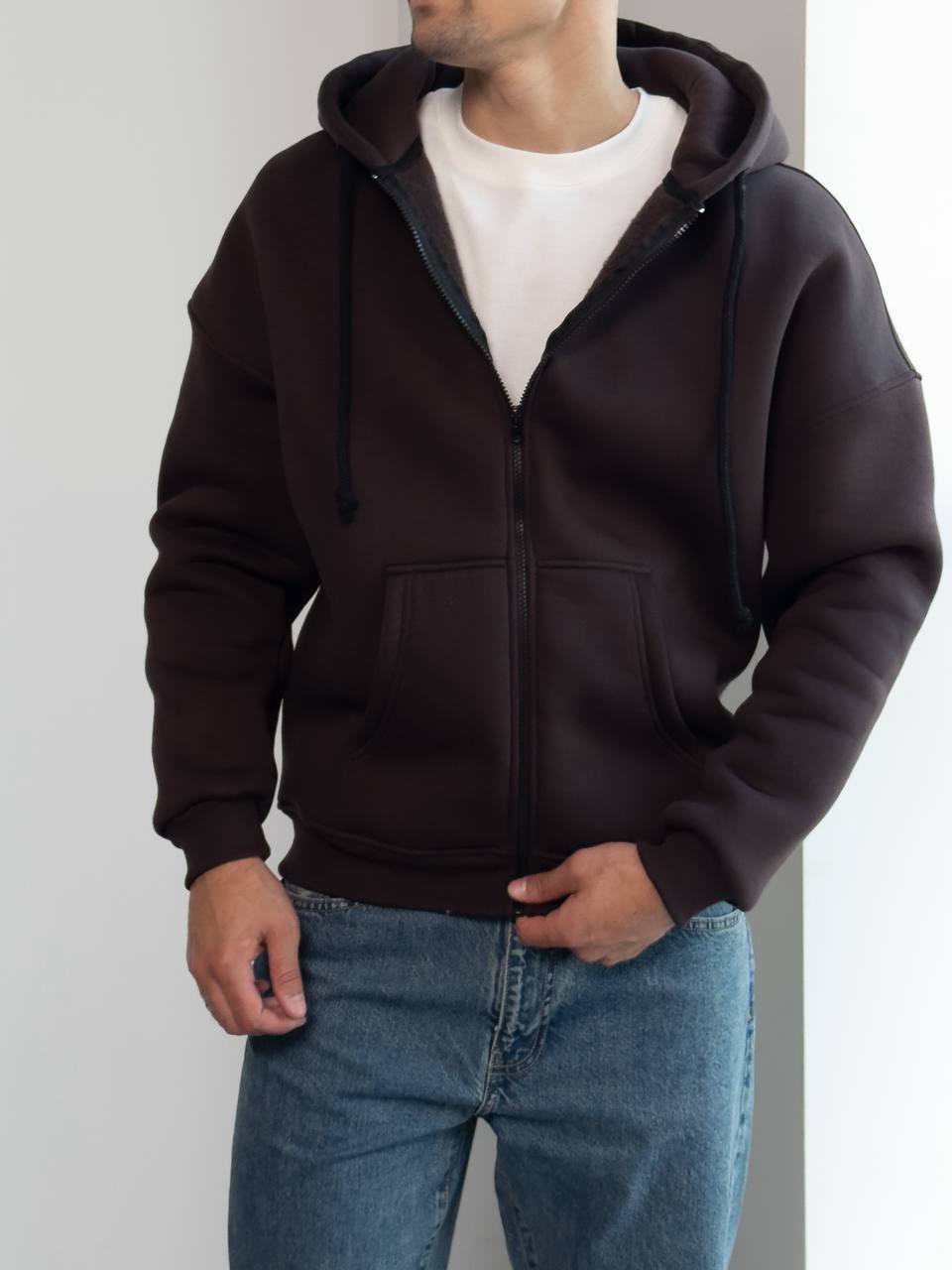 Мужская Теплая Коричневая Кофта Зипка на Флисе – Худи Свободного Кроя на Молнии