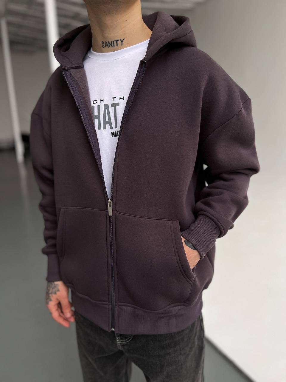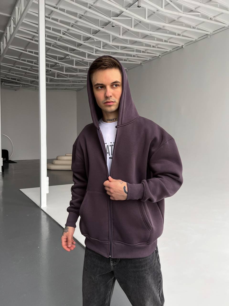 Мужская Теплая Темно-Фиолетовая Кофта на Молнии с Капюшоном – Хлопковое Худи на Флисе