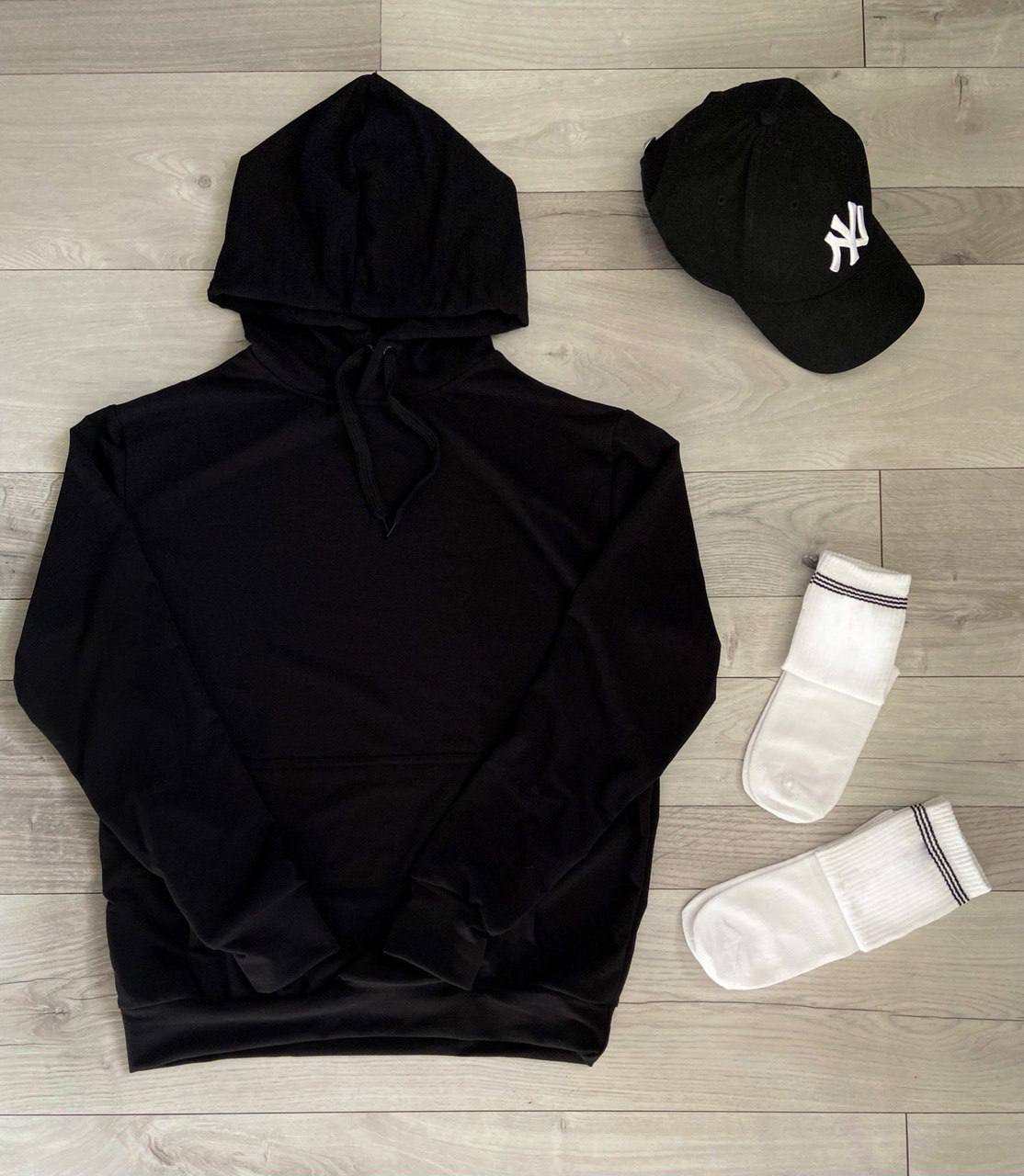 Мужское Базовое Черное Худи с Капюшоном и Карманом-Кенгуру