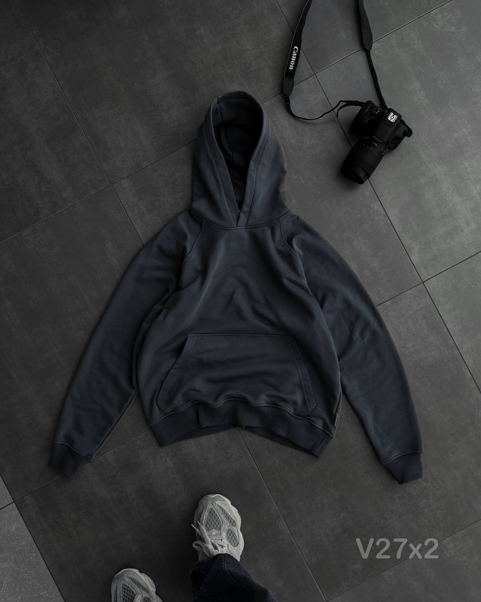Мужское Базовое Графитовое Худи Оверсайз с Вышитой Надписью на Спине – Утепленное с Начесом