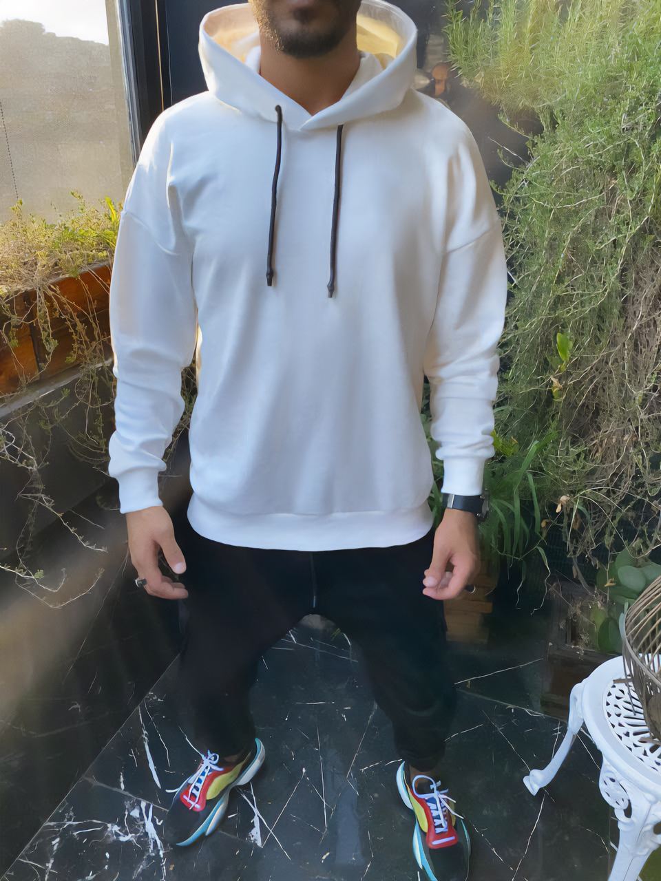 Мужское Базовое Коттоновое Белое Худи Оверсайз – Толстовка Свободного Кроя