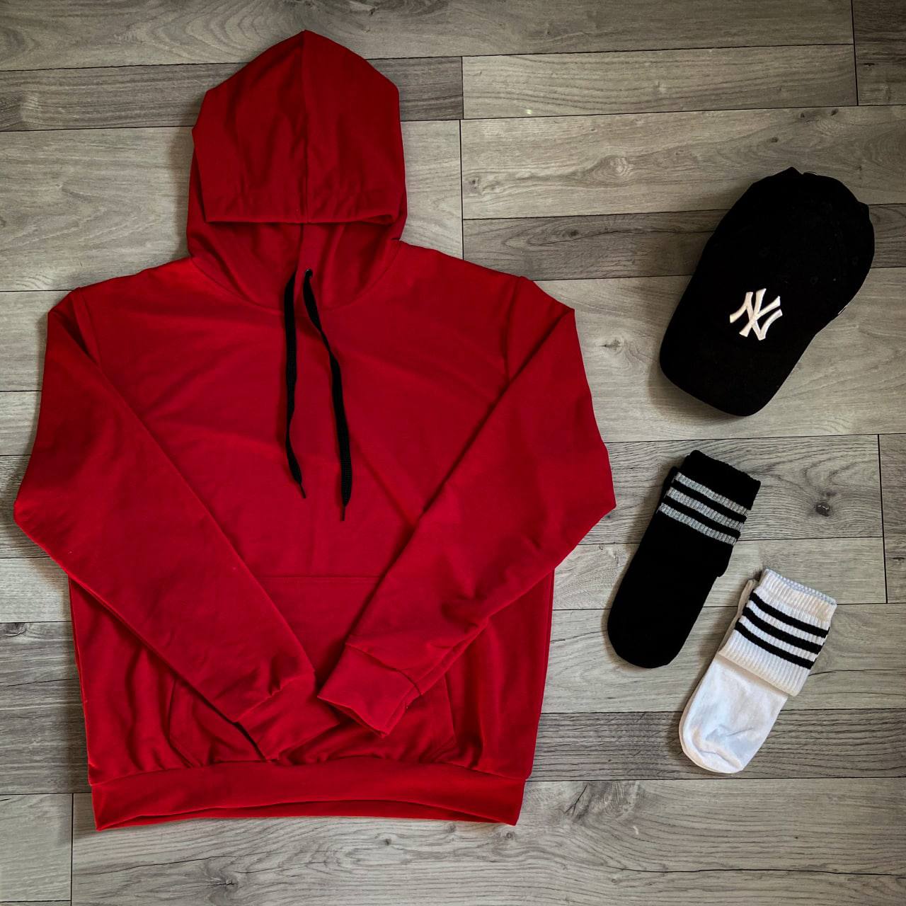 Мужское Базовое Красное Худи с Капюшоном и Карманом-Кенгуру
