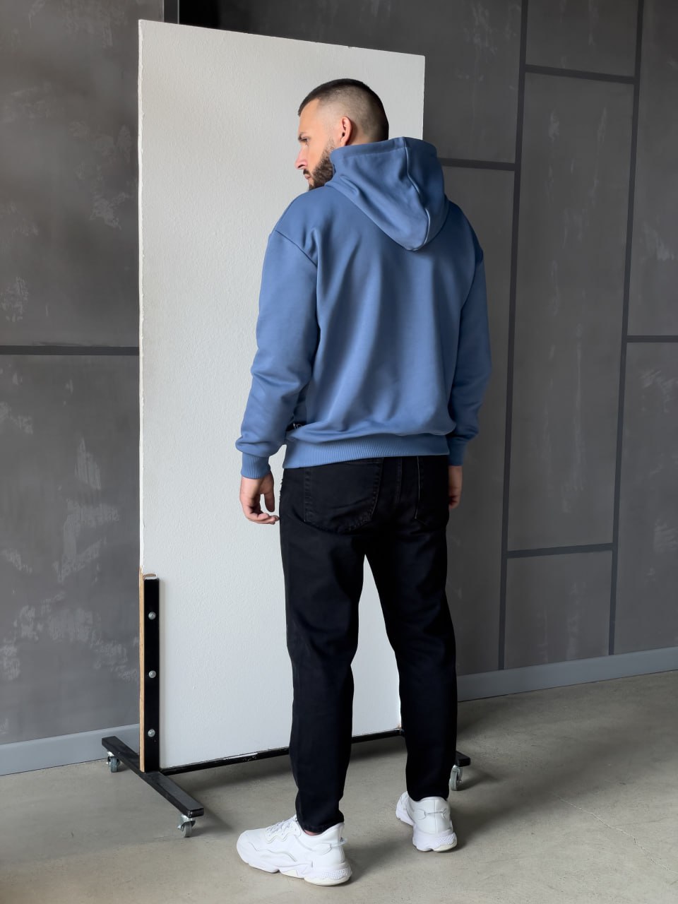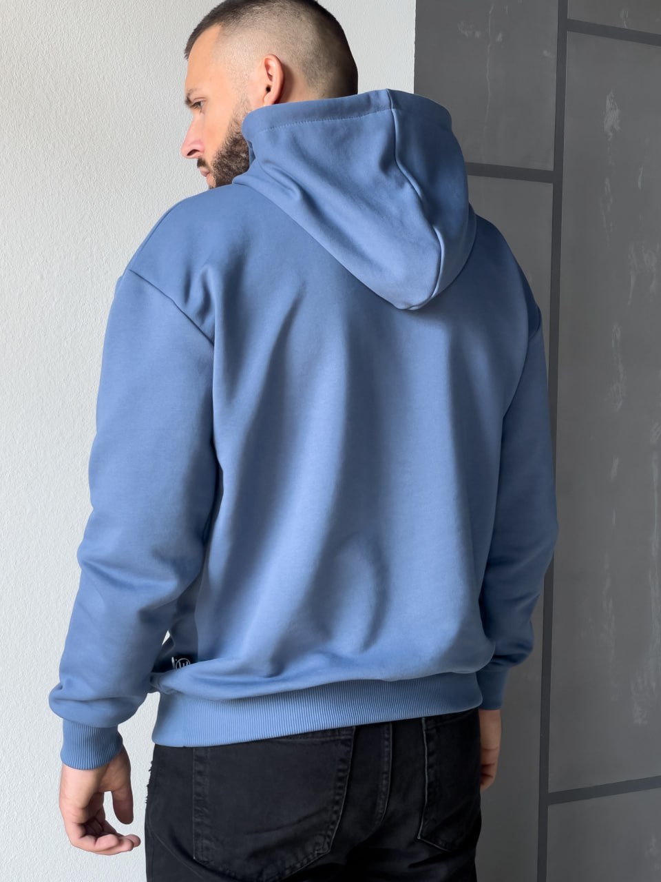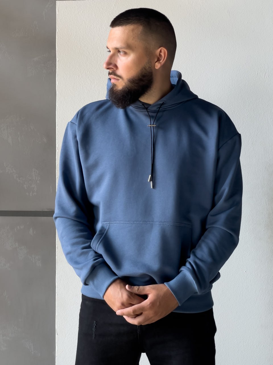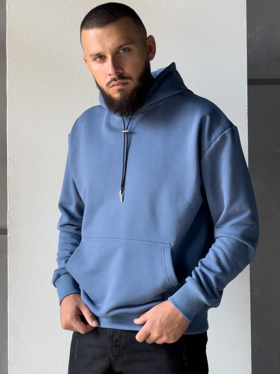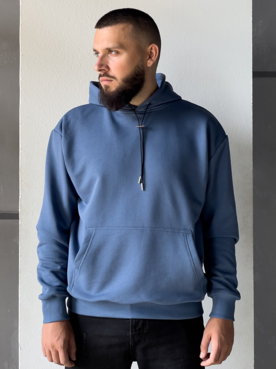 Мужское Базовое Синее Худи Оверсайз – Объемная Толстовка с Капюшоном на Кулиске