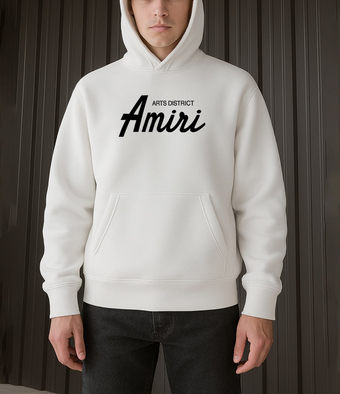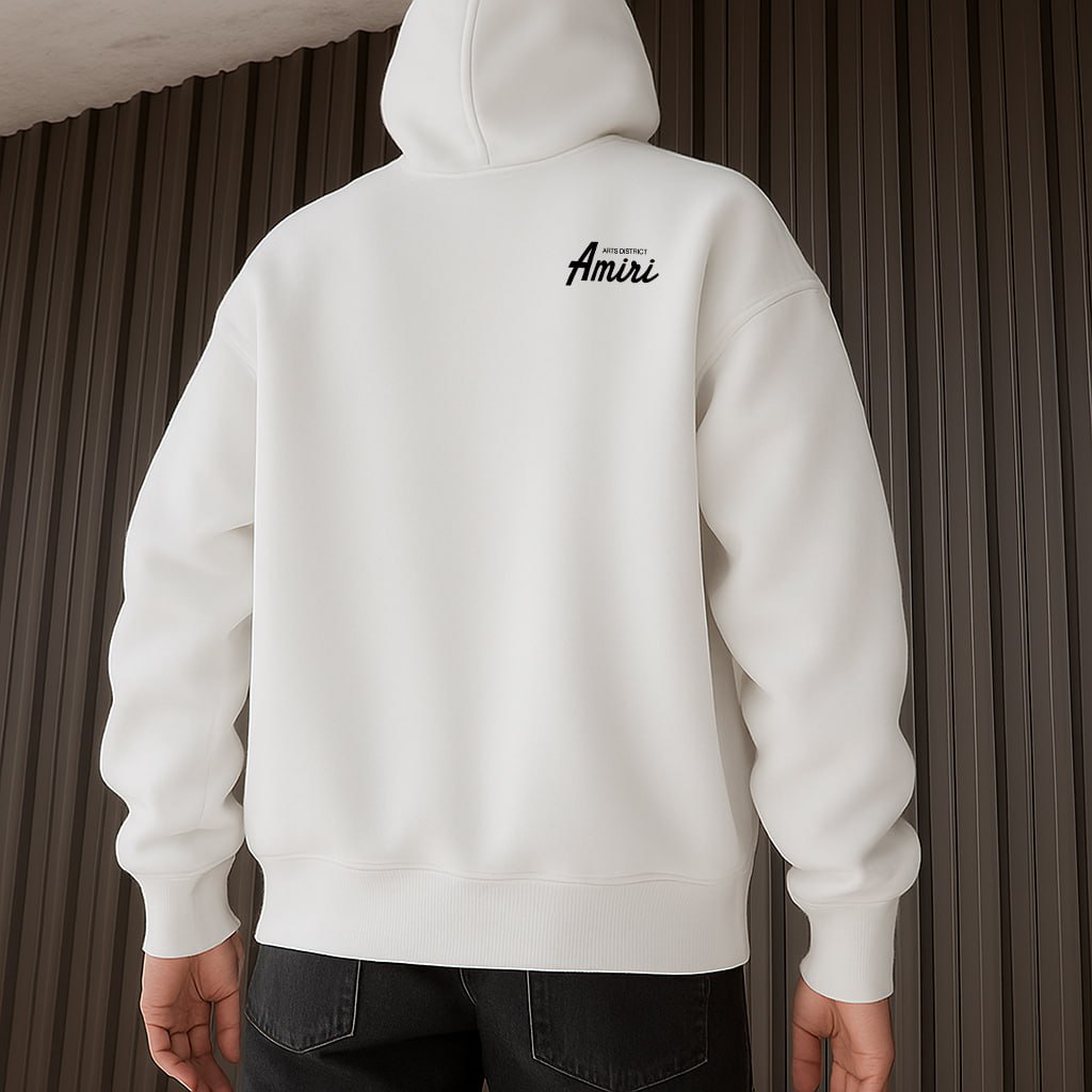 Мужское Белое Худи “Amiri” Оверсайз с Принтом – Утепленное с Начесом