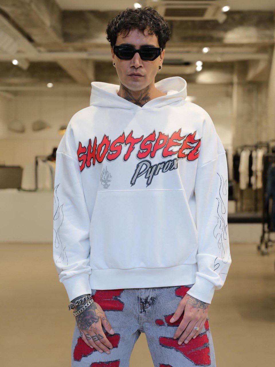 Мужское Белое Худи Оверсаз – Толстовка с Яркими Принтами Надписями