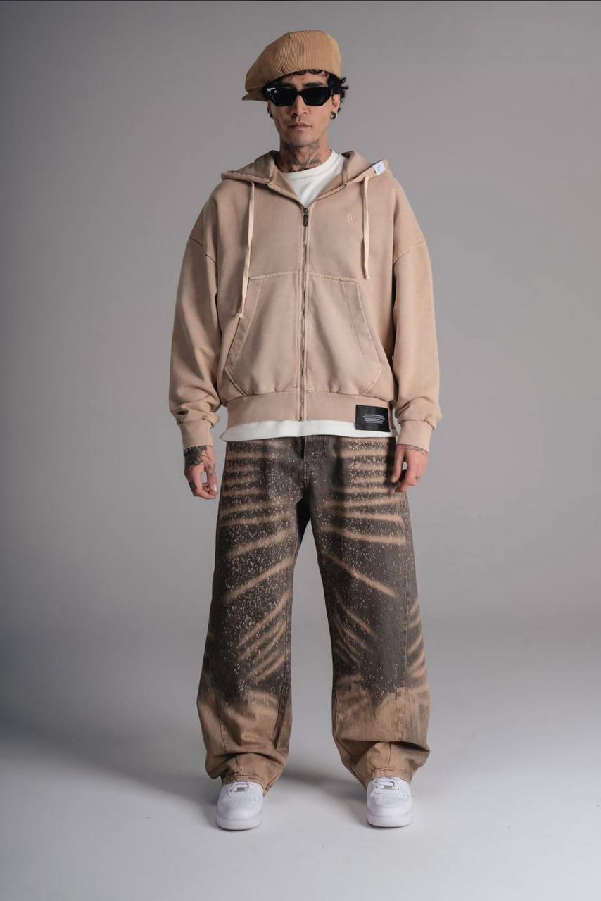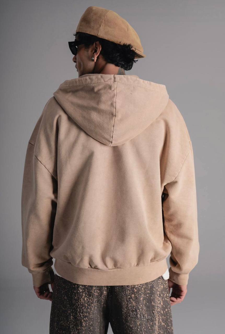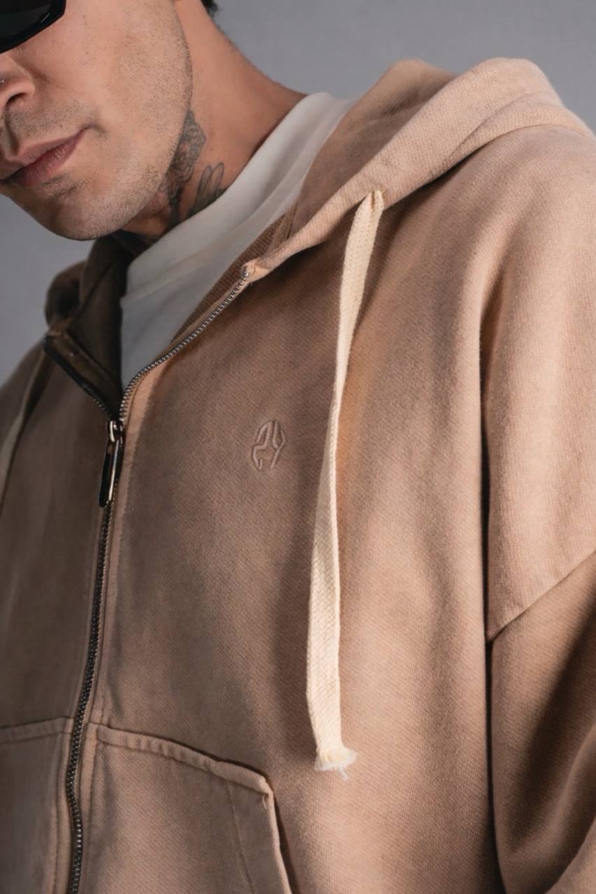 Мужское Бежевое Зип Худи Оверсайз – Кофта Зипка Варенка на Молнии Свободного Кроя
