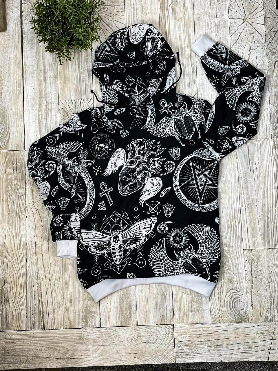 Главная Магазин Каталог Мужское Худи - Свитшоты Мужское Черное Белое Худи Оверсайз Heart – Свободная Толстовка с Капюшоном и Ярким принтом Сердце