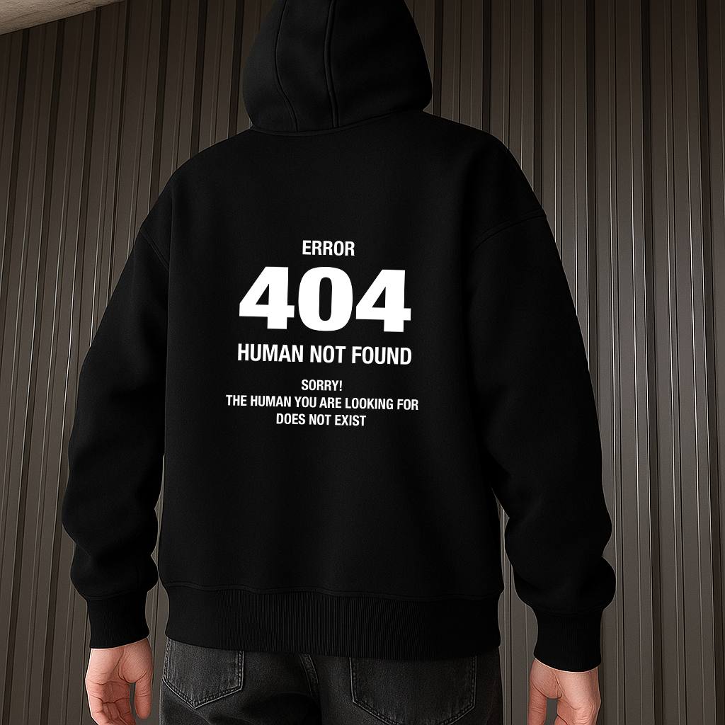 Мужское Черное Худи “404” Оверсайз с Принтом на Спине – Утепленное с Начесом