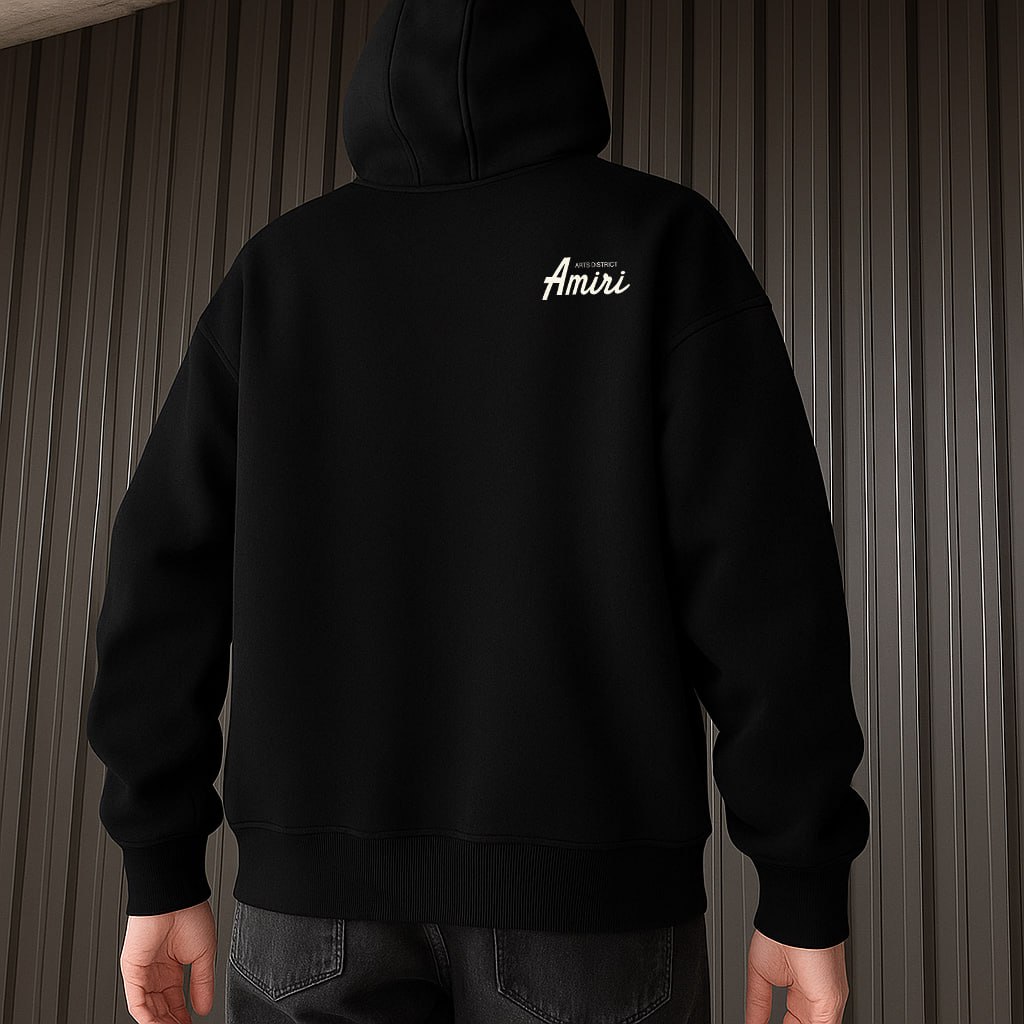 Мужское Черное Худи “Amiri” Оверсайз с Принтом – Утепленное с Начесом