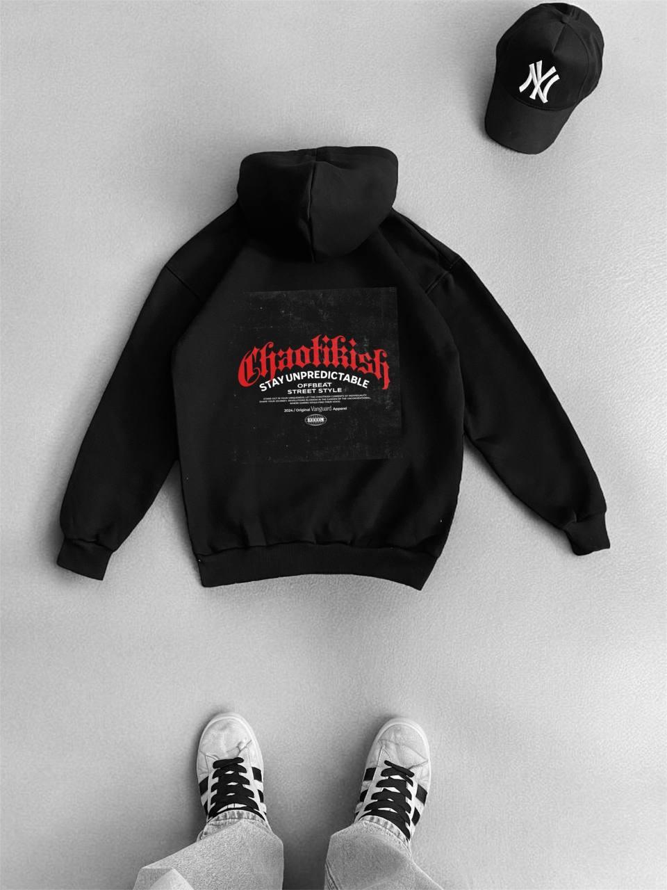 Мужское Черное Худи Оверсайз – Трехнитка c Принтом Надпись