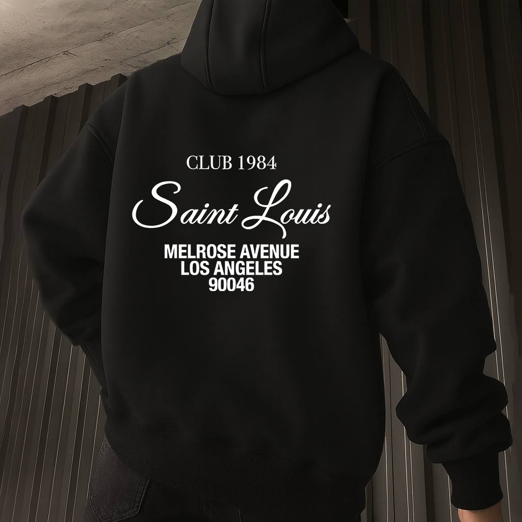 Мужское Черное Худи “Saint Louis” Оверсайз с Принтом – Утепленное с Начесом