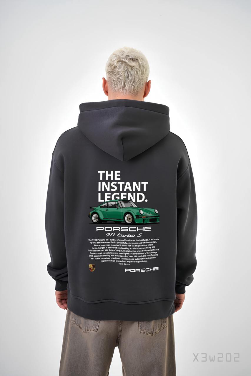 Мужское Графитовое Худи Свободного Кроя Трехнитка на Флисе с Принтом Машина