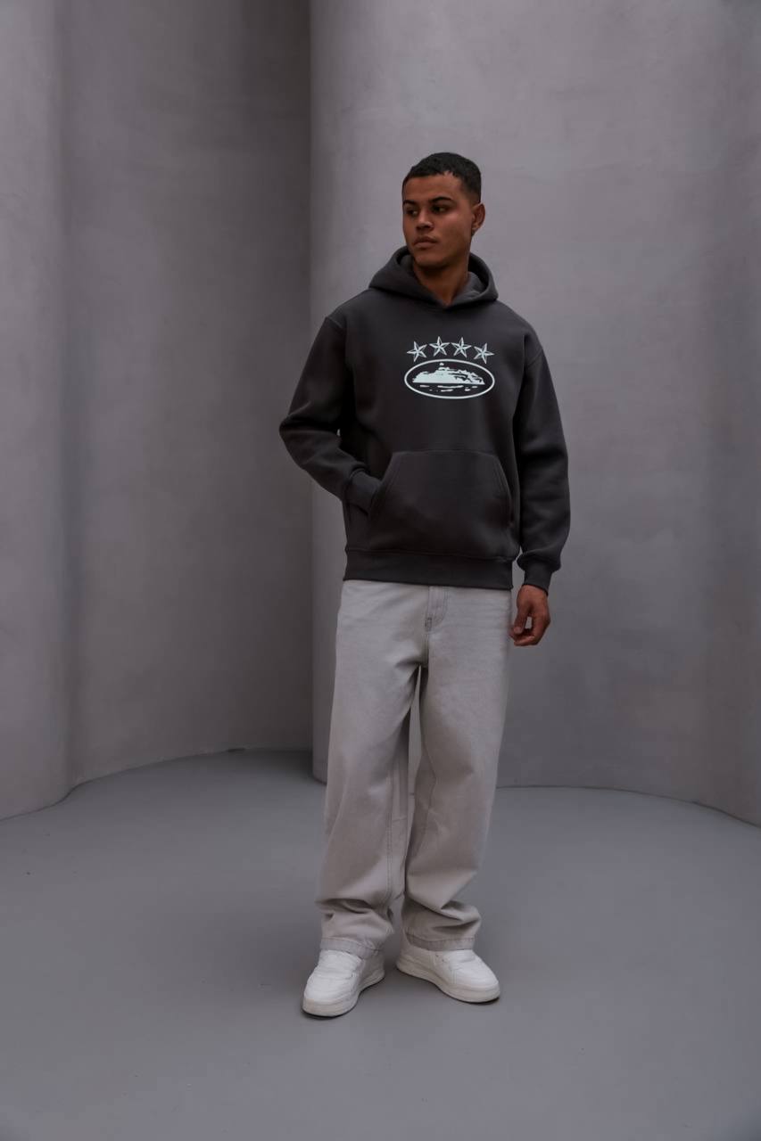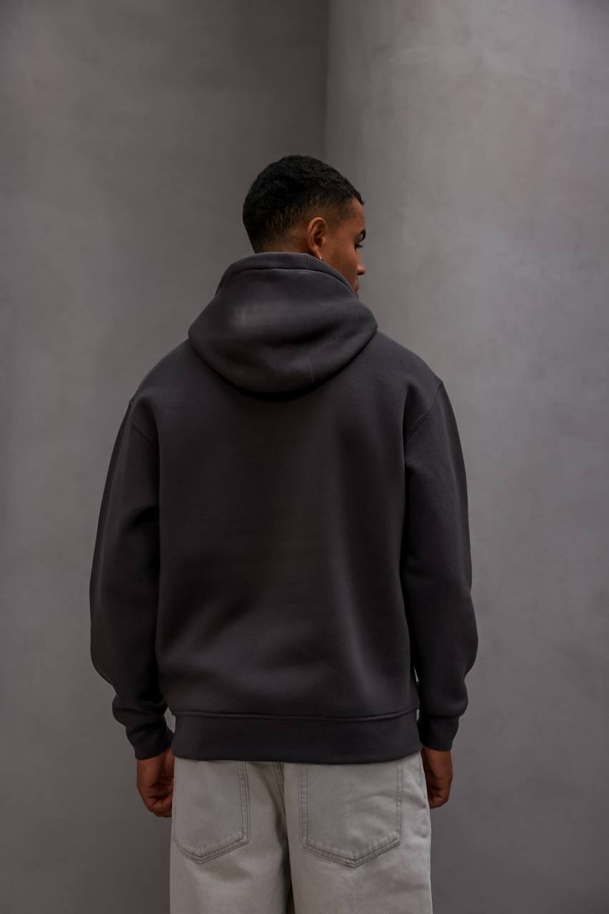 Мужское Графитовое Худи Трехнитка Оверсаз – Толстовка Свободного Кроя с Принтом