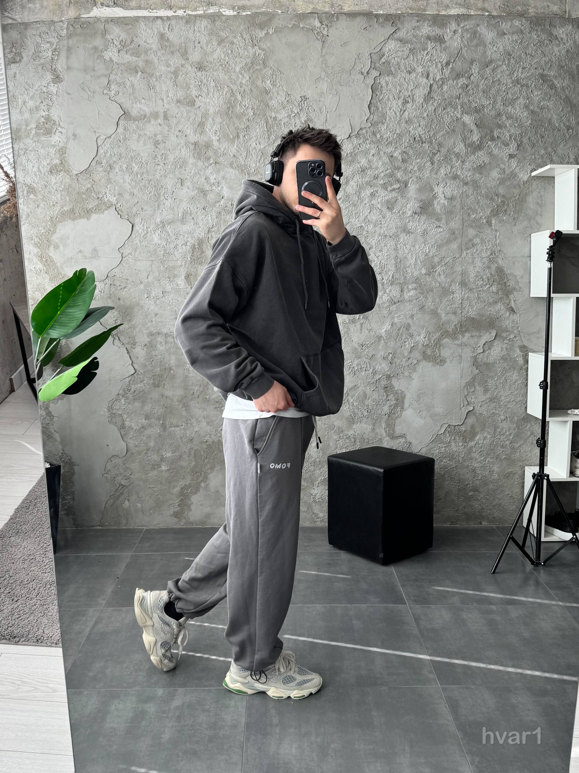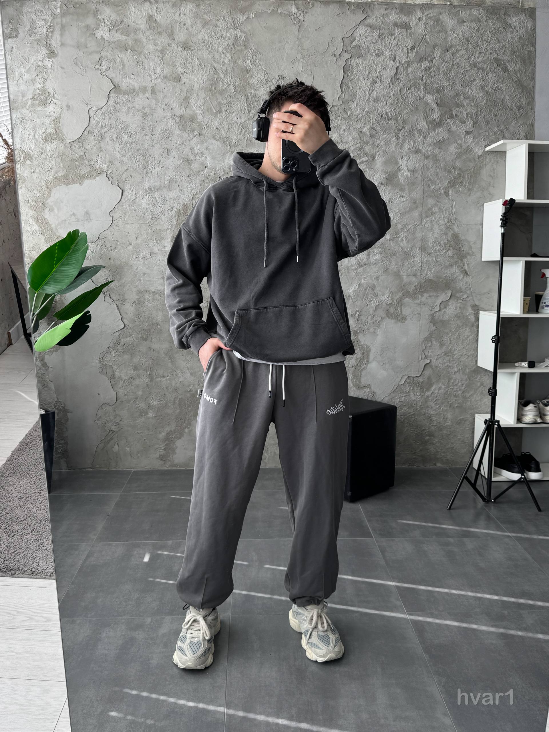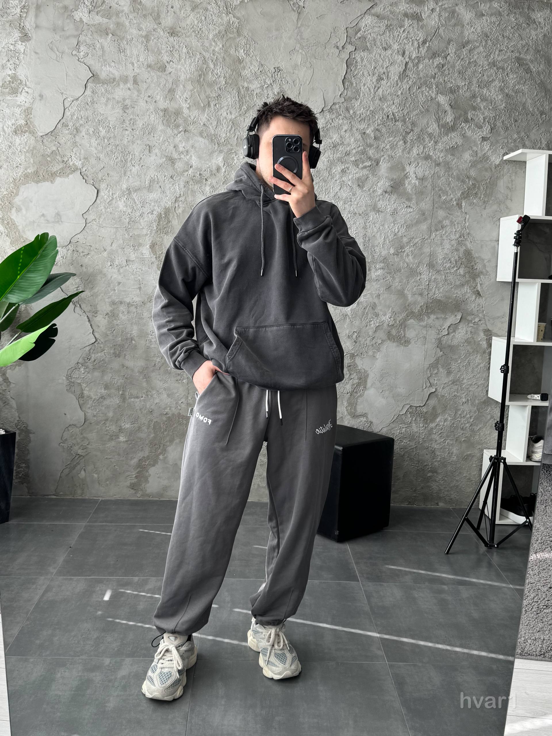 Мужское Графитовое Вареное Худи Оверсайз – Утепленное на Флисе