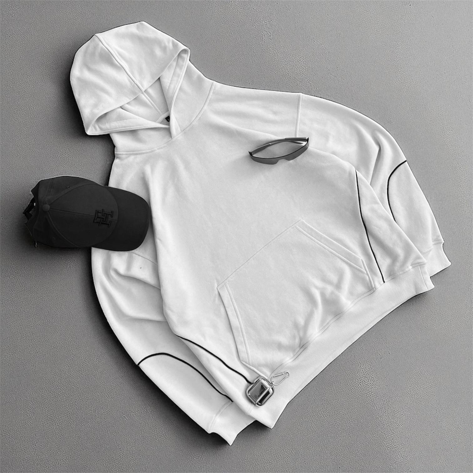 Мужское Хлопковое Белое Худи Оверсайз – Толстовка с Кантом