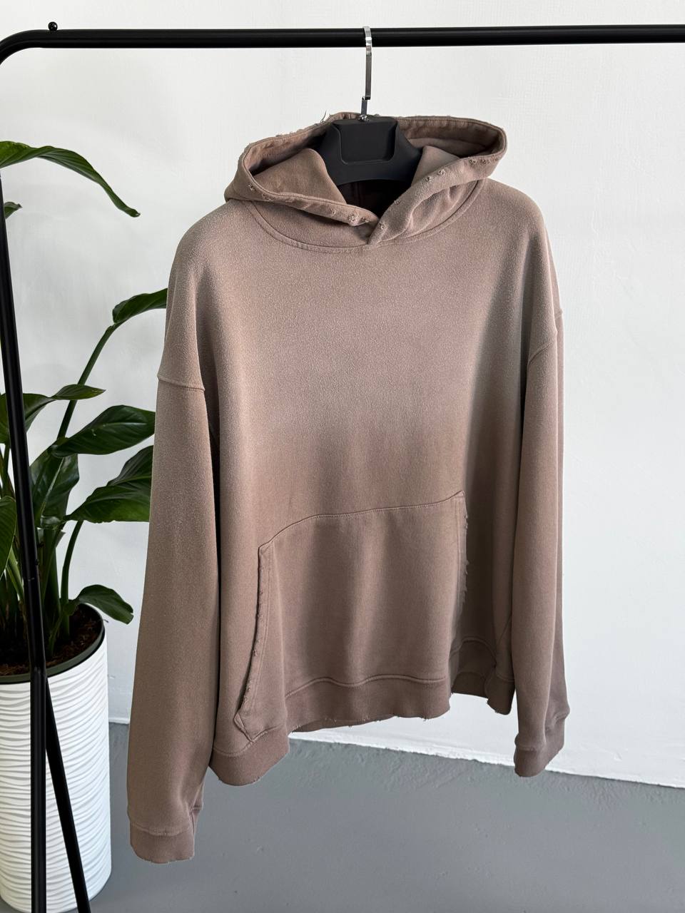 Мужское Коричневое Худи Градиент Оверсайз с Потертостями