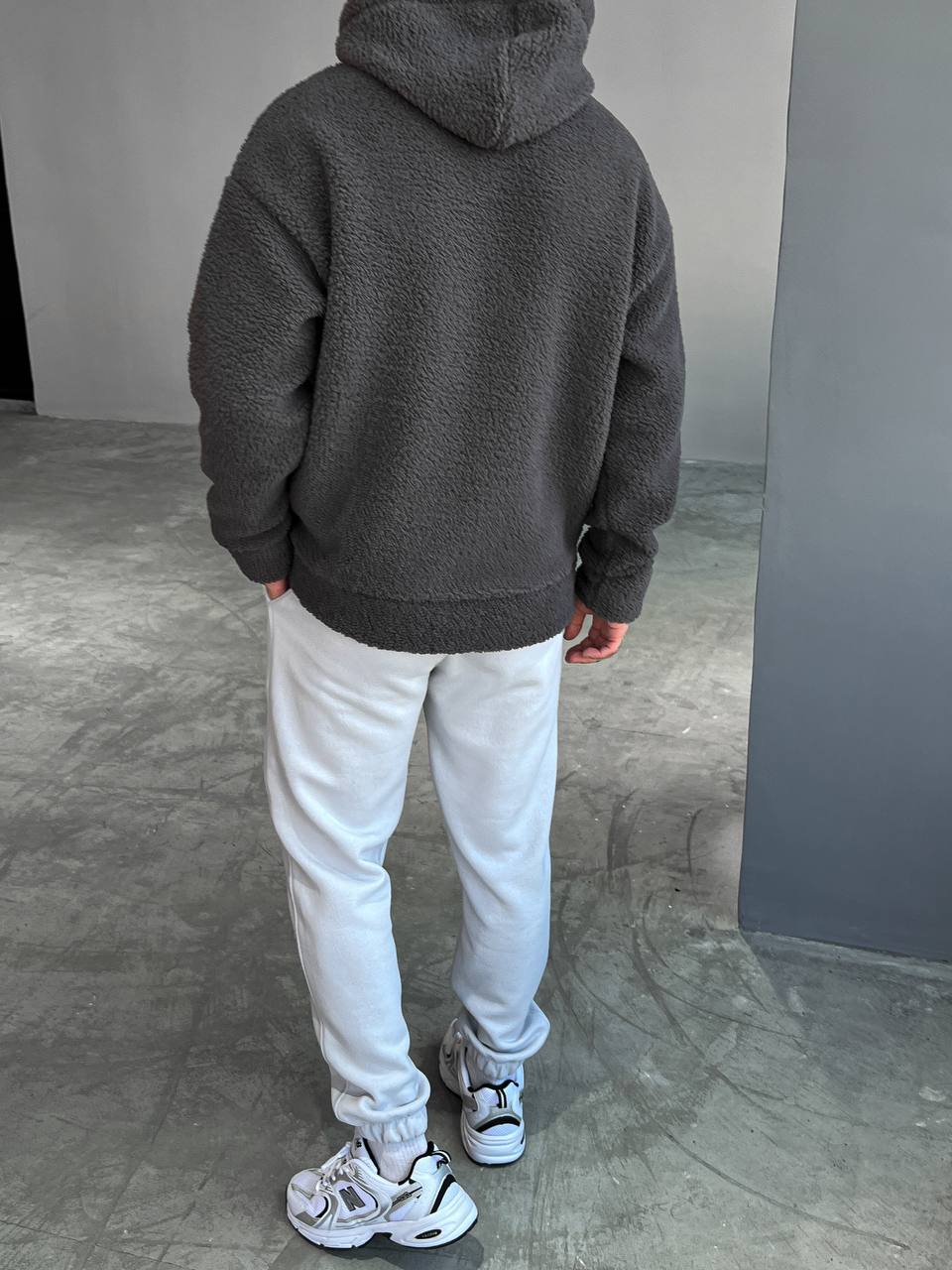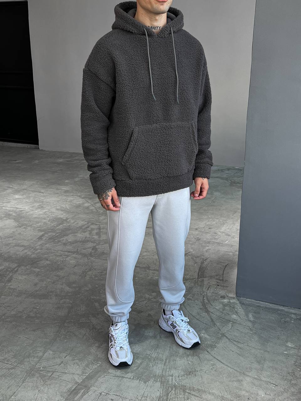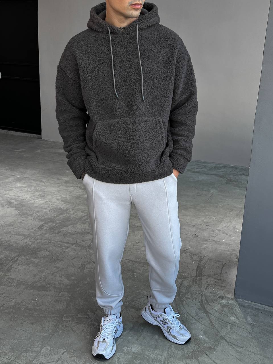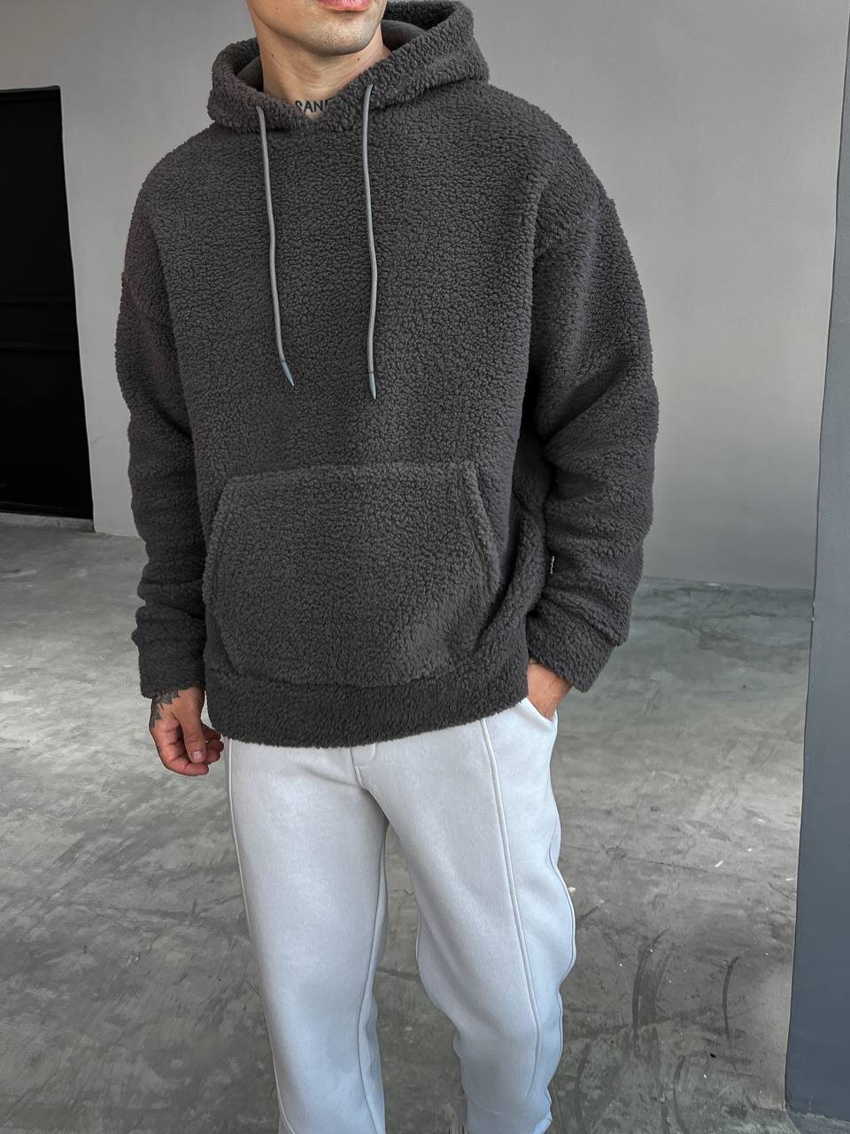 Мужское Плюшевое Графитовое Худи Кенгуру Оверсайз