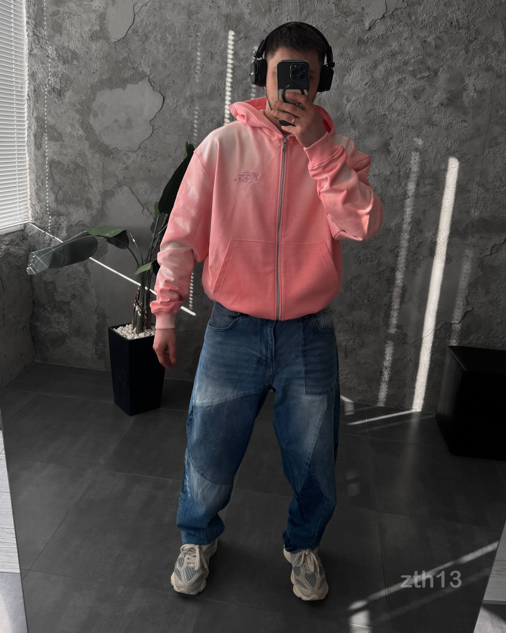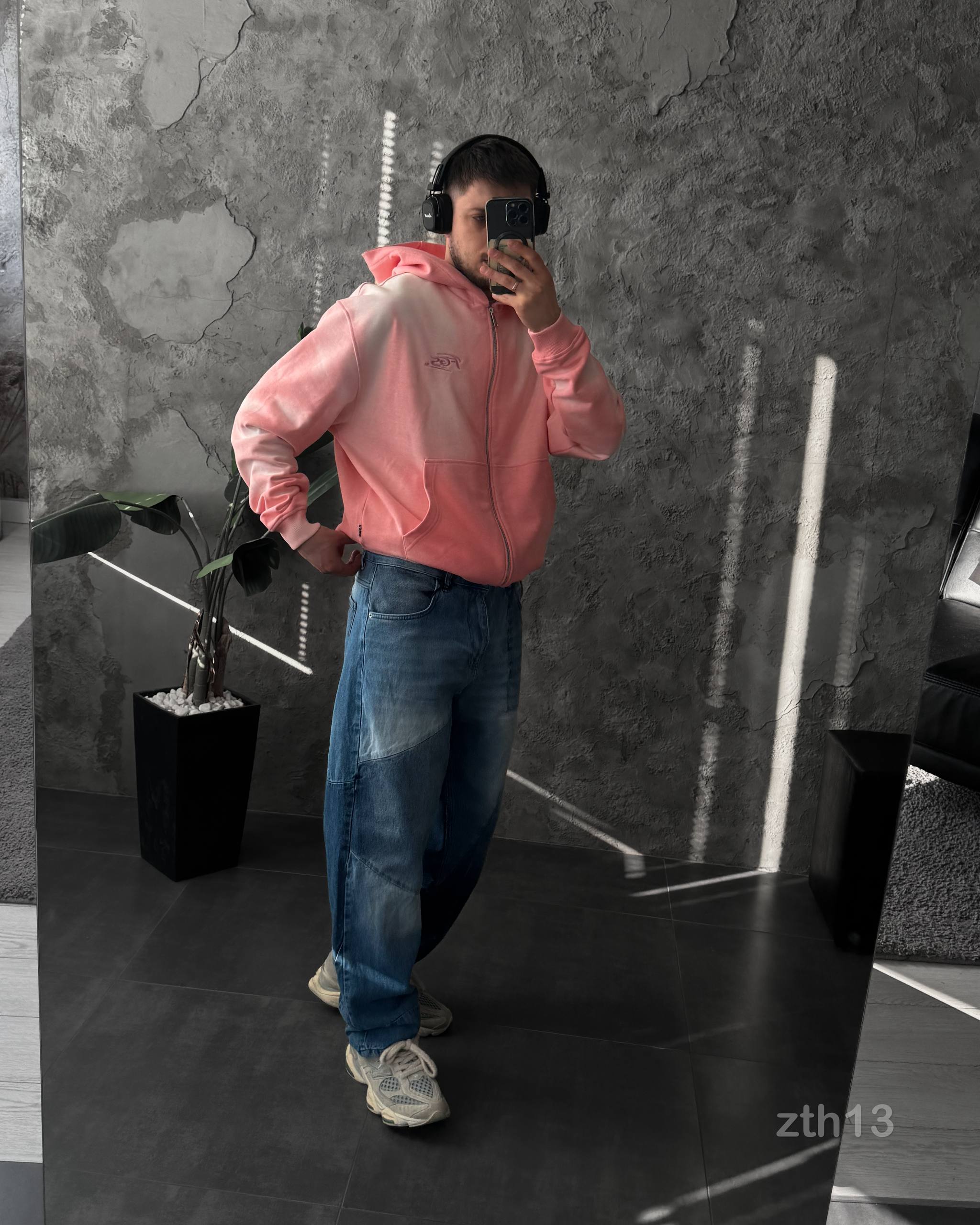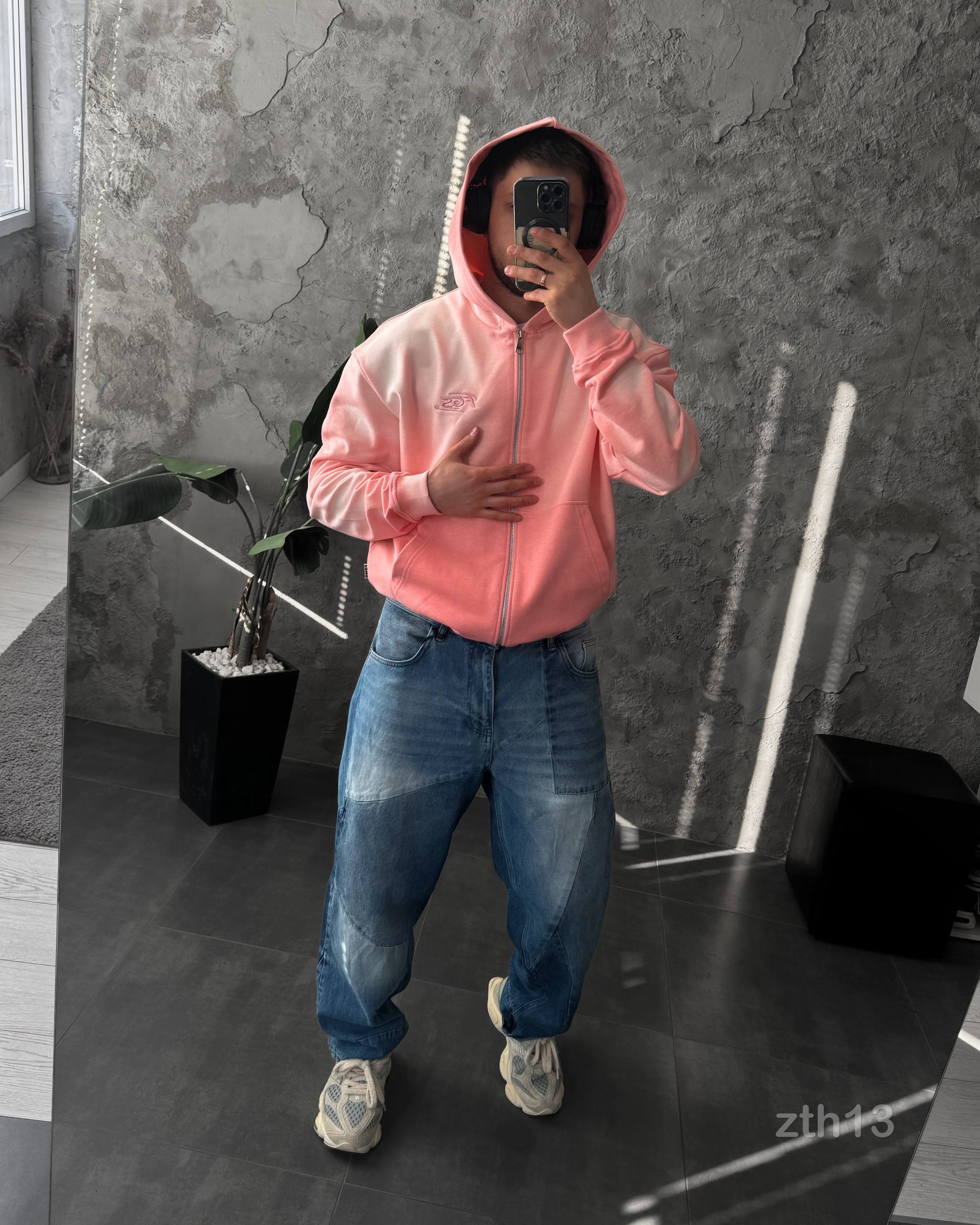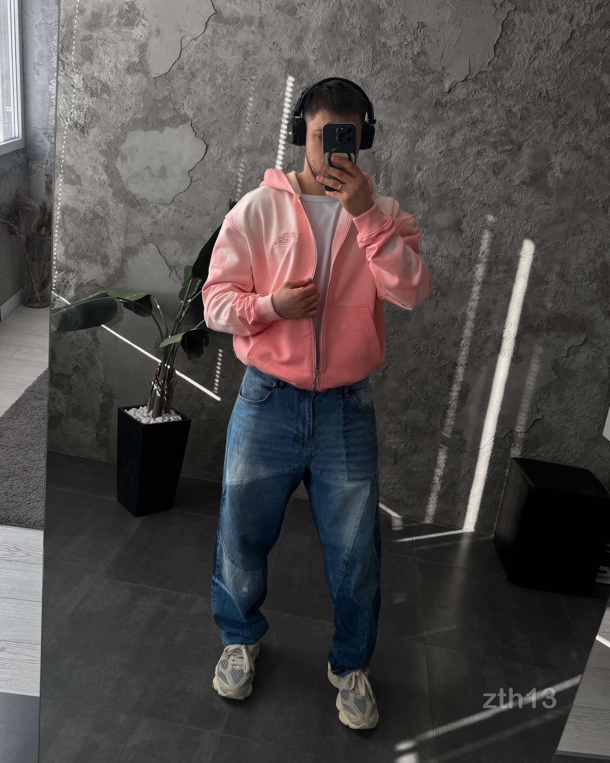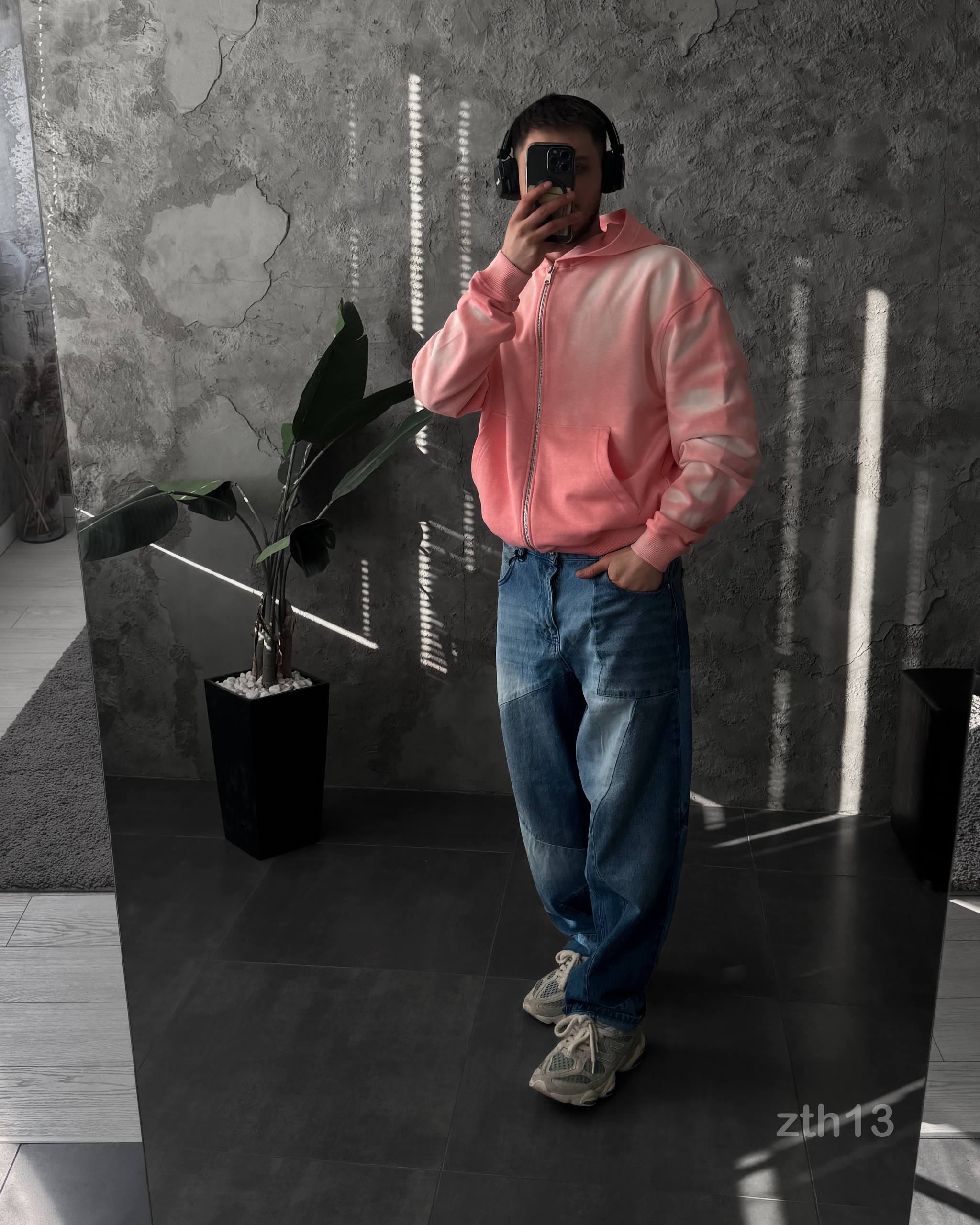 Мужское Розовое Худи Зипка на Молнии Оверсайз – Трехнитка ТЕРМОХРОМ
