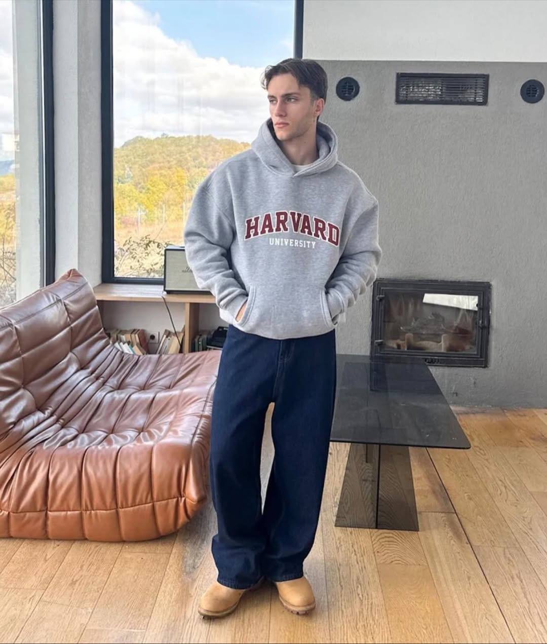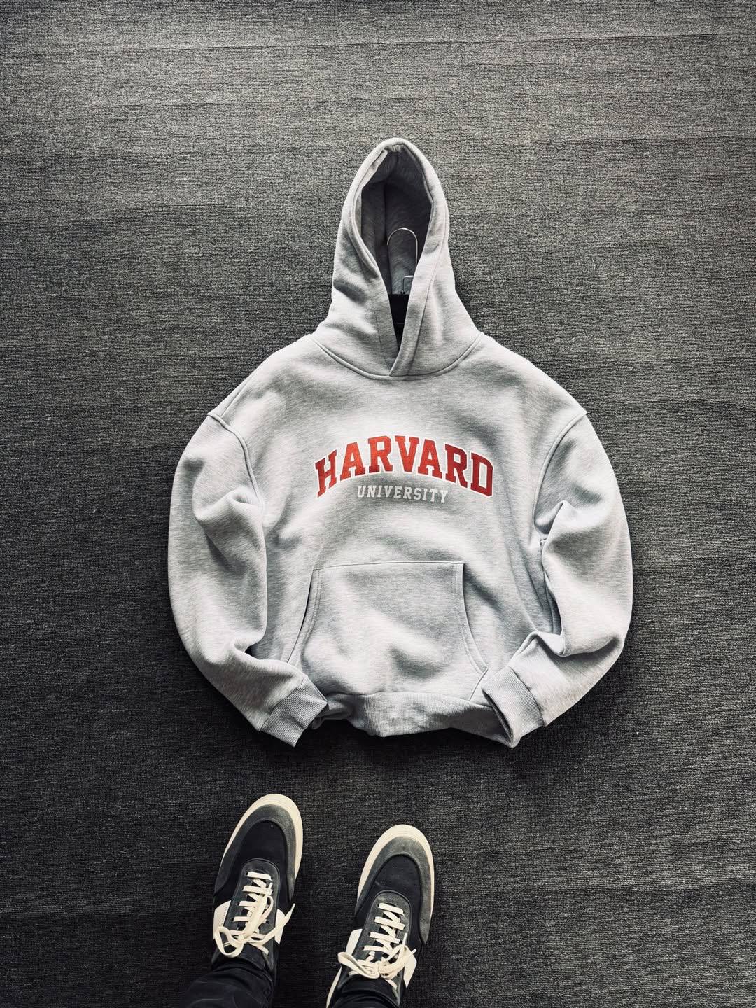 Мужское Серое Худи “Harvard” Оверсайз на Флисе