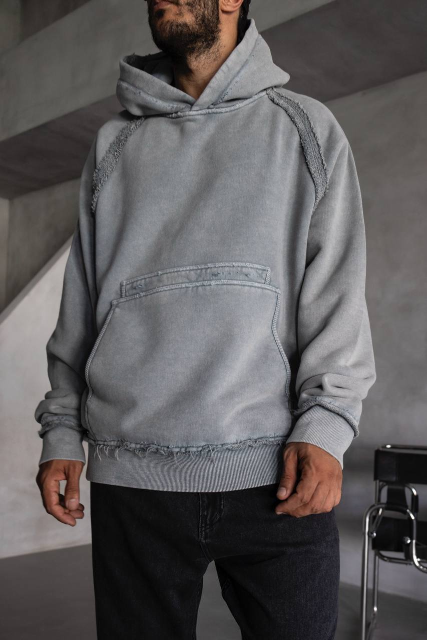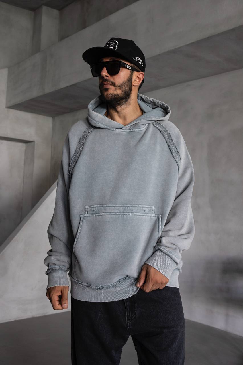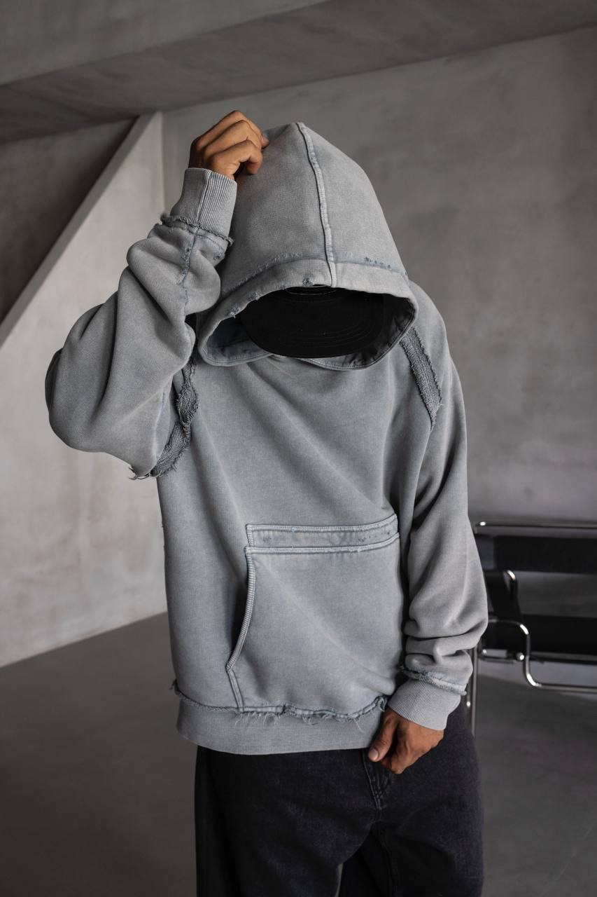 Мужское Серое Худи Оверсаз – Рваное с Поношенным Эффектом