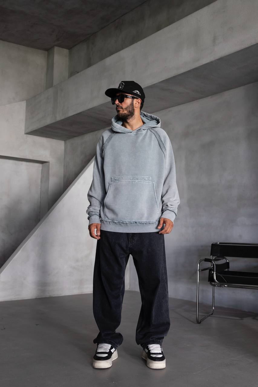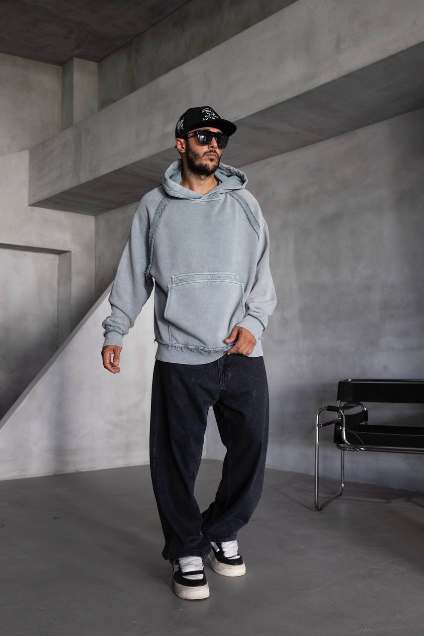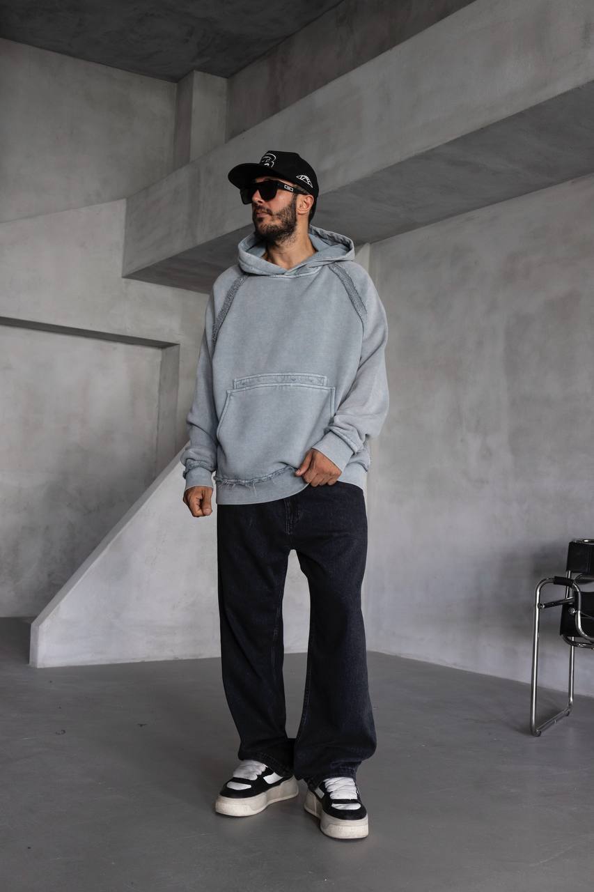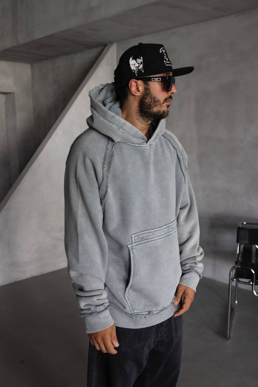 Мужское Серое Худи Оверсаз – Рваное с Поношенным Эффектом