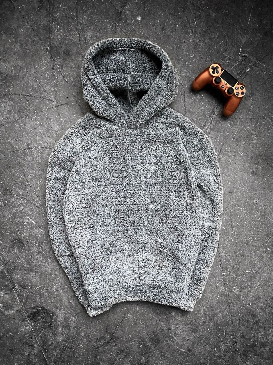 Мужское Серое Худи Плюшевое – Кофта Мякиш с Капюшоном
