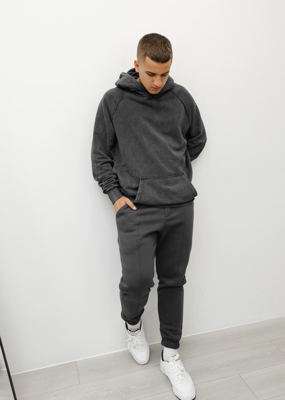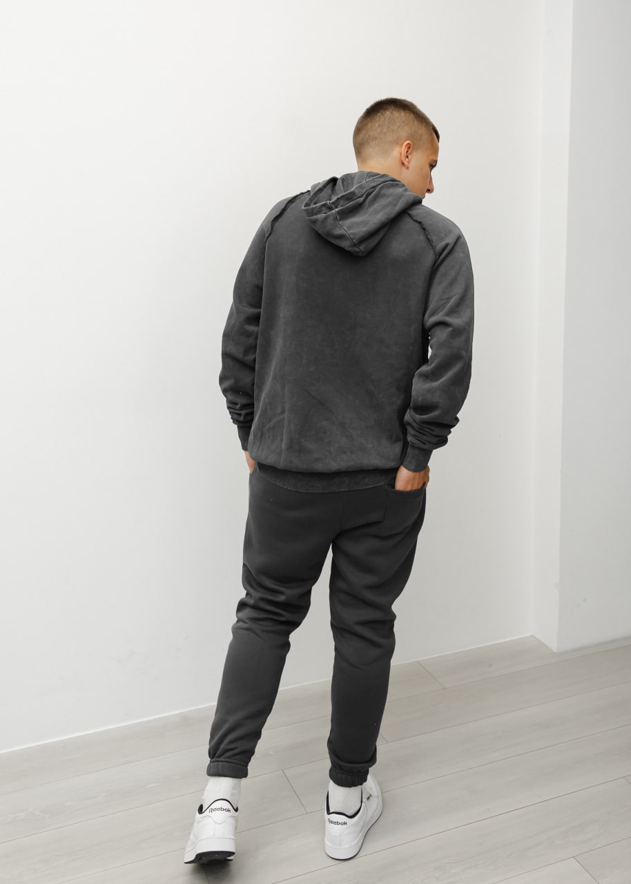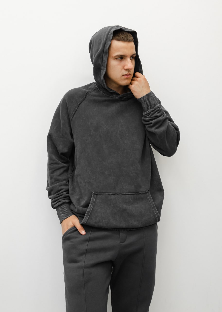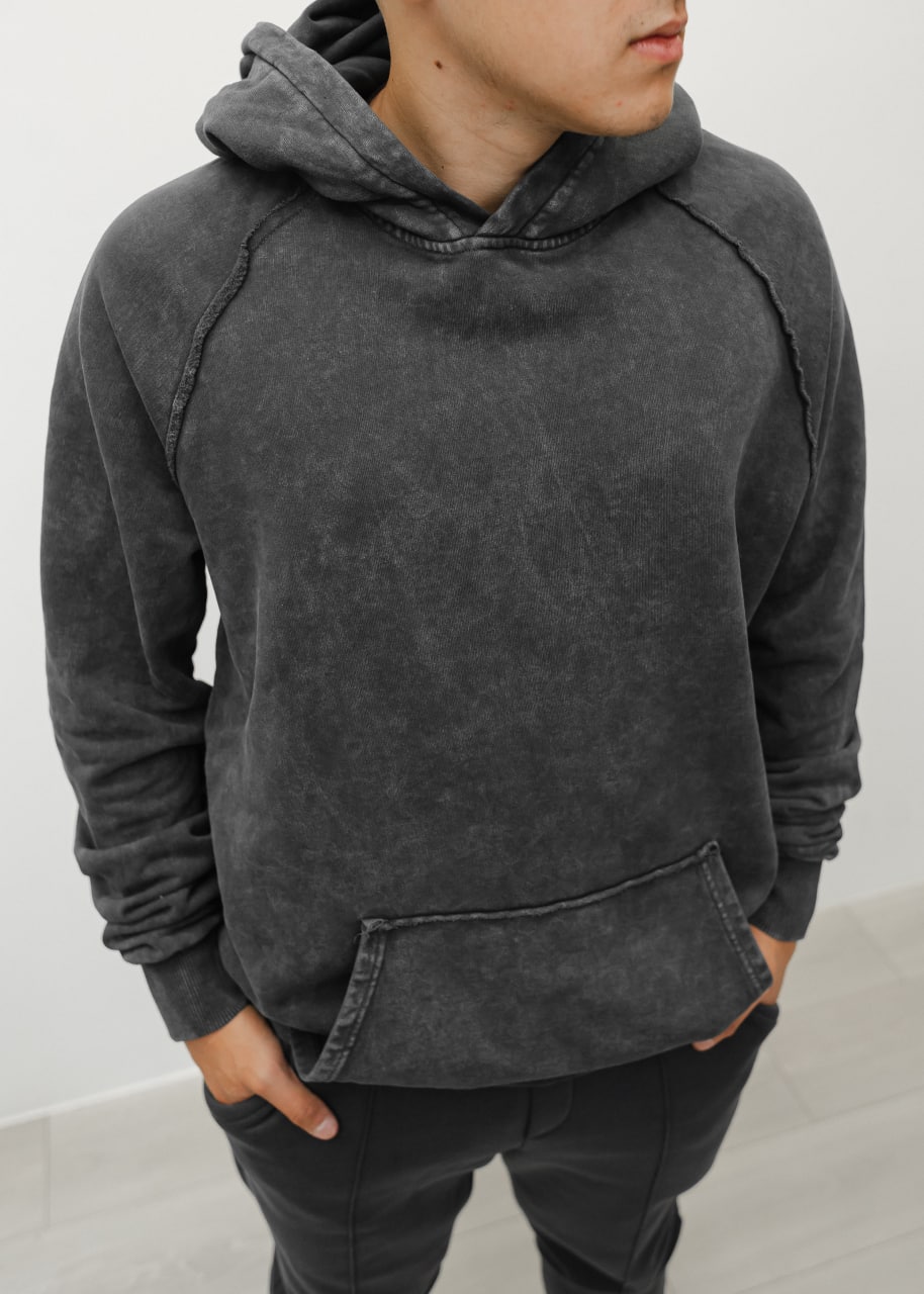 Мужское Темно-Серое Худи Оверсайз – Хлопковое Плотное со Швами Наружу