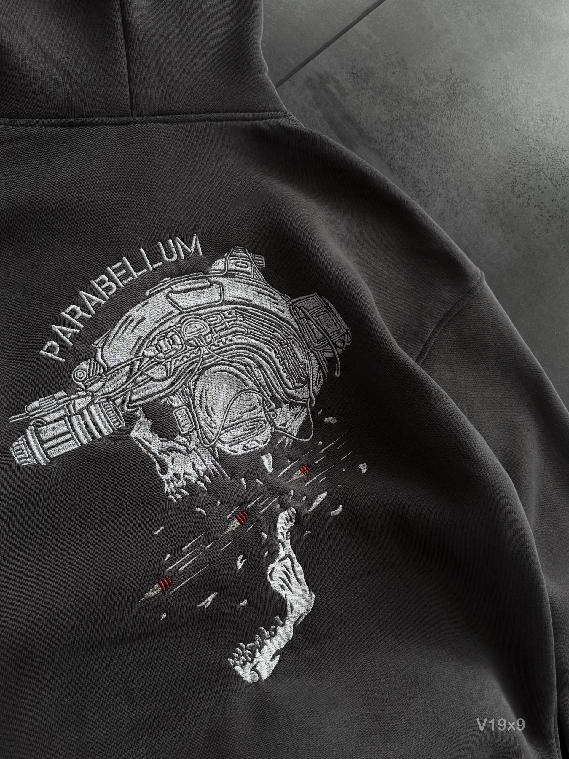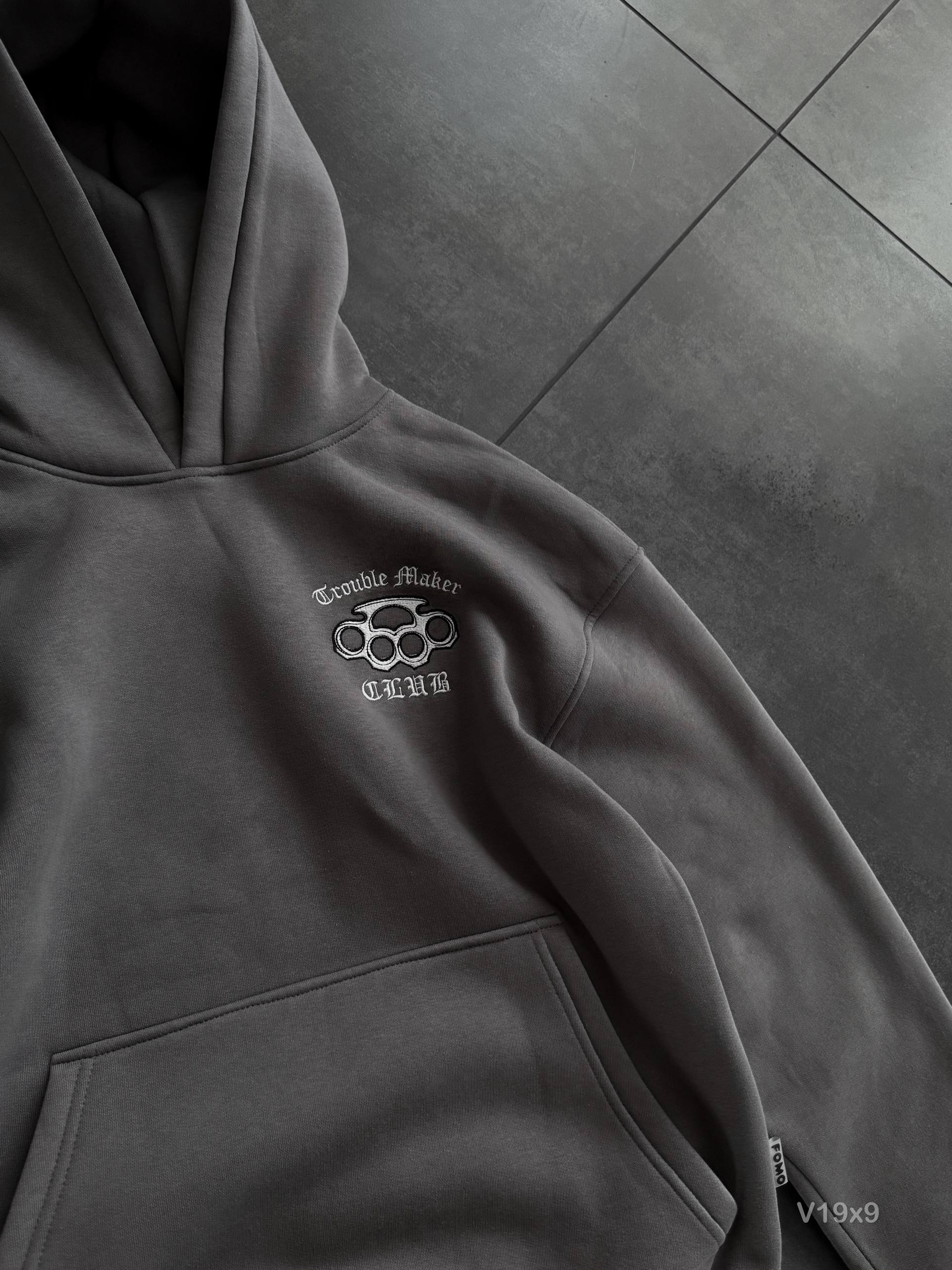 Мужское Темно-Серое Худи Оверсайз с Вышивкой на Спине – Утепленное на Флисе