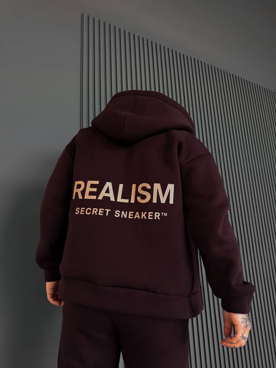 Мужское Теплое Коричневое Зип Худи с Начесом – Кофта Зипка на Молнии с Надписью на Спине