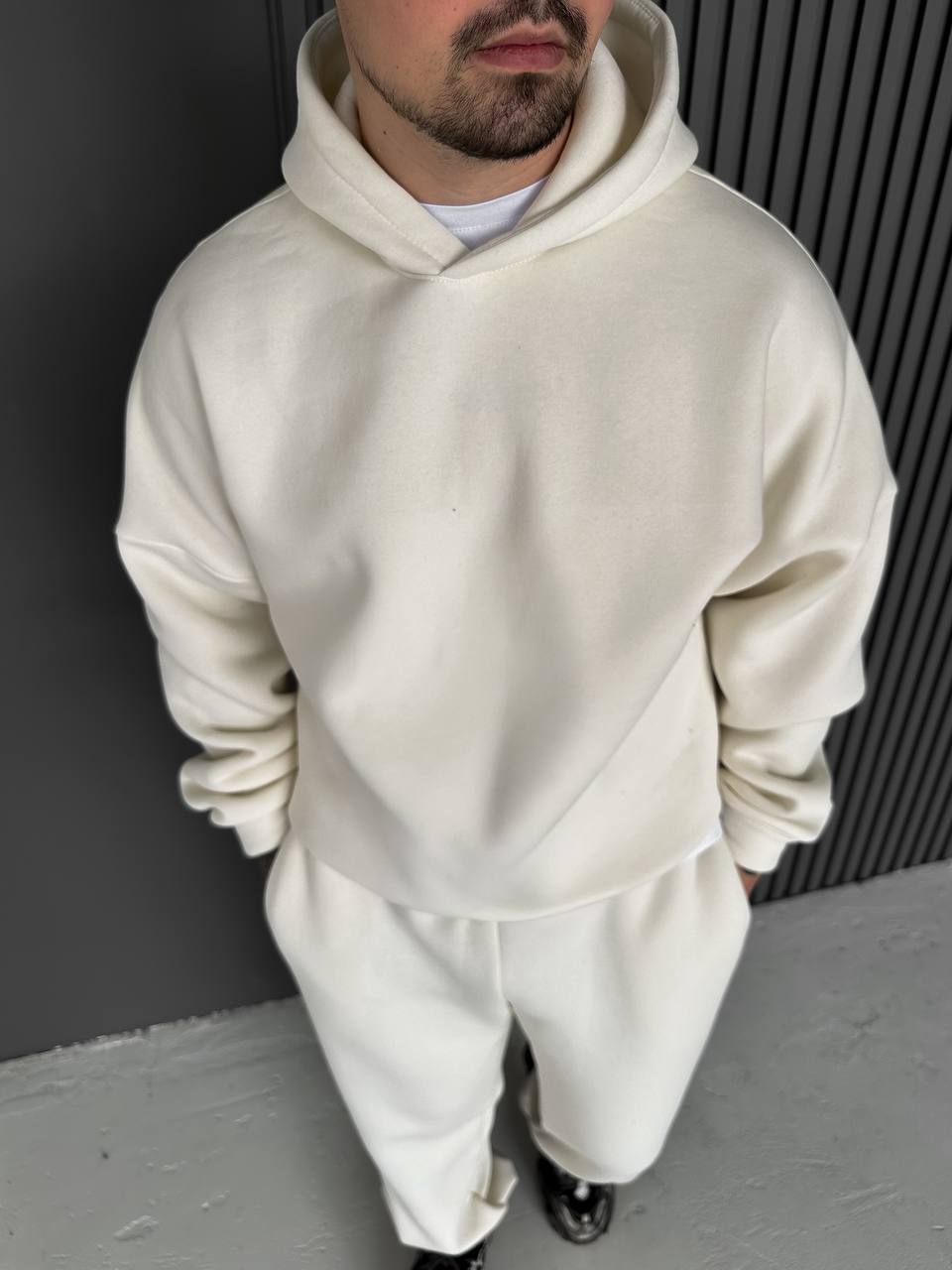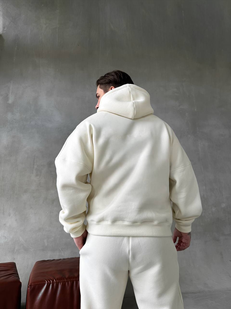 Мужское Утепленное Базовое Молочное Худи – Толстовка с Начесом