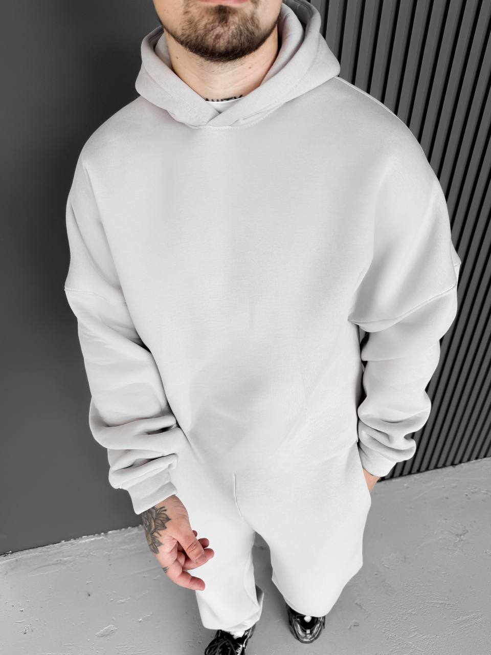 Мужское Утепленное Базовое Серое Худи – Толстовка с Начесом