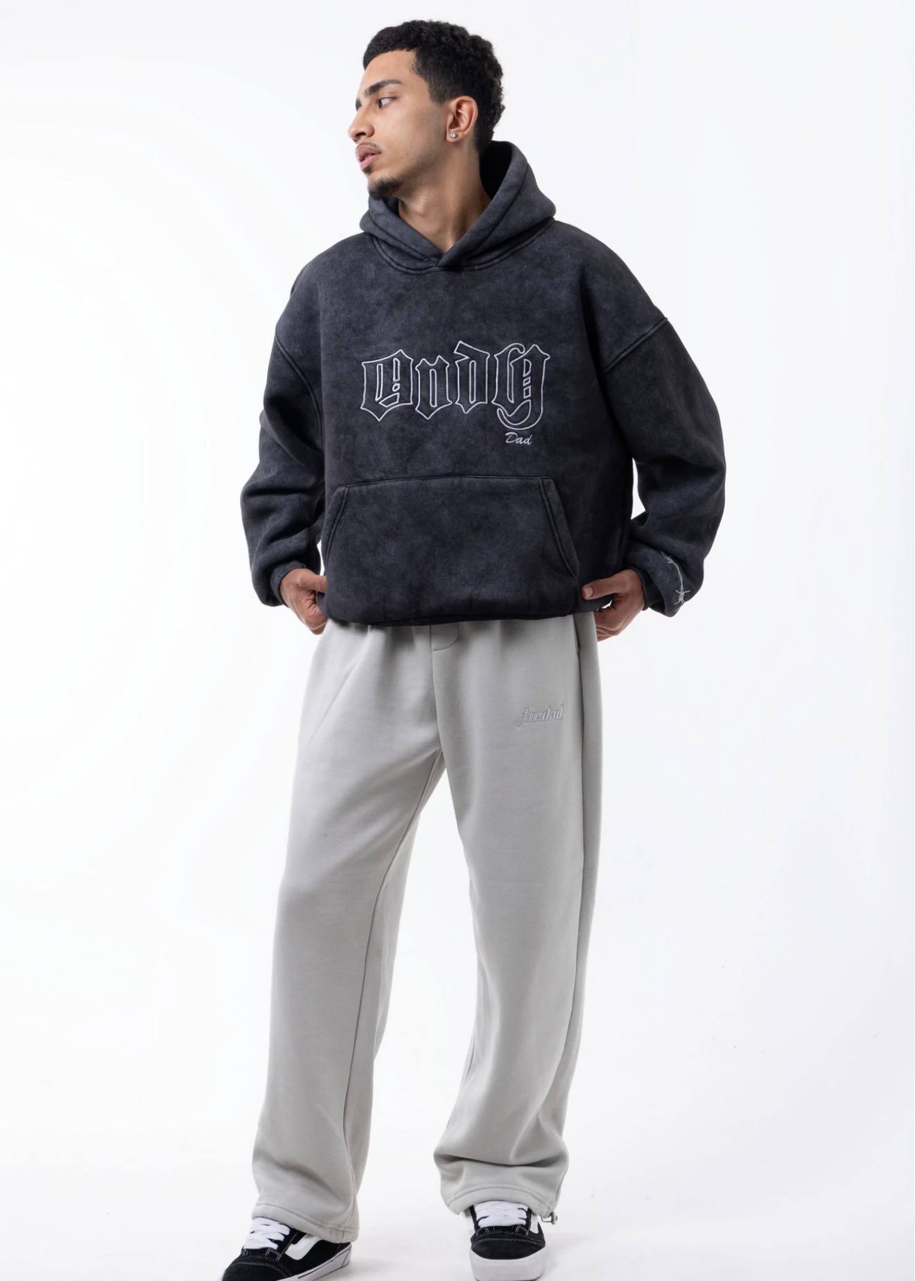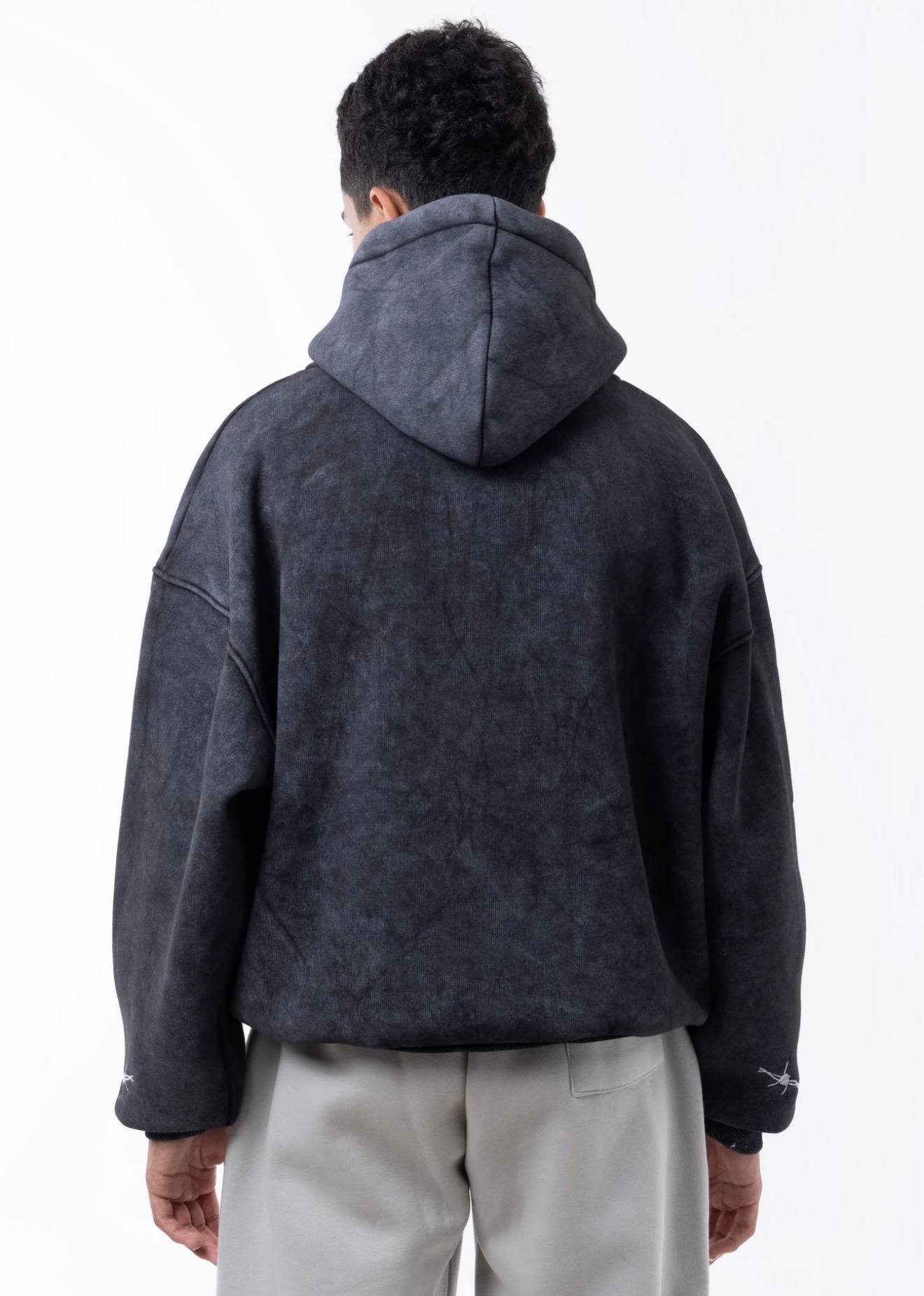 Мужское Утепленное Графитовое Худи Варенка Оверсайз на Флисе с Вышивками