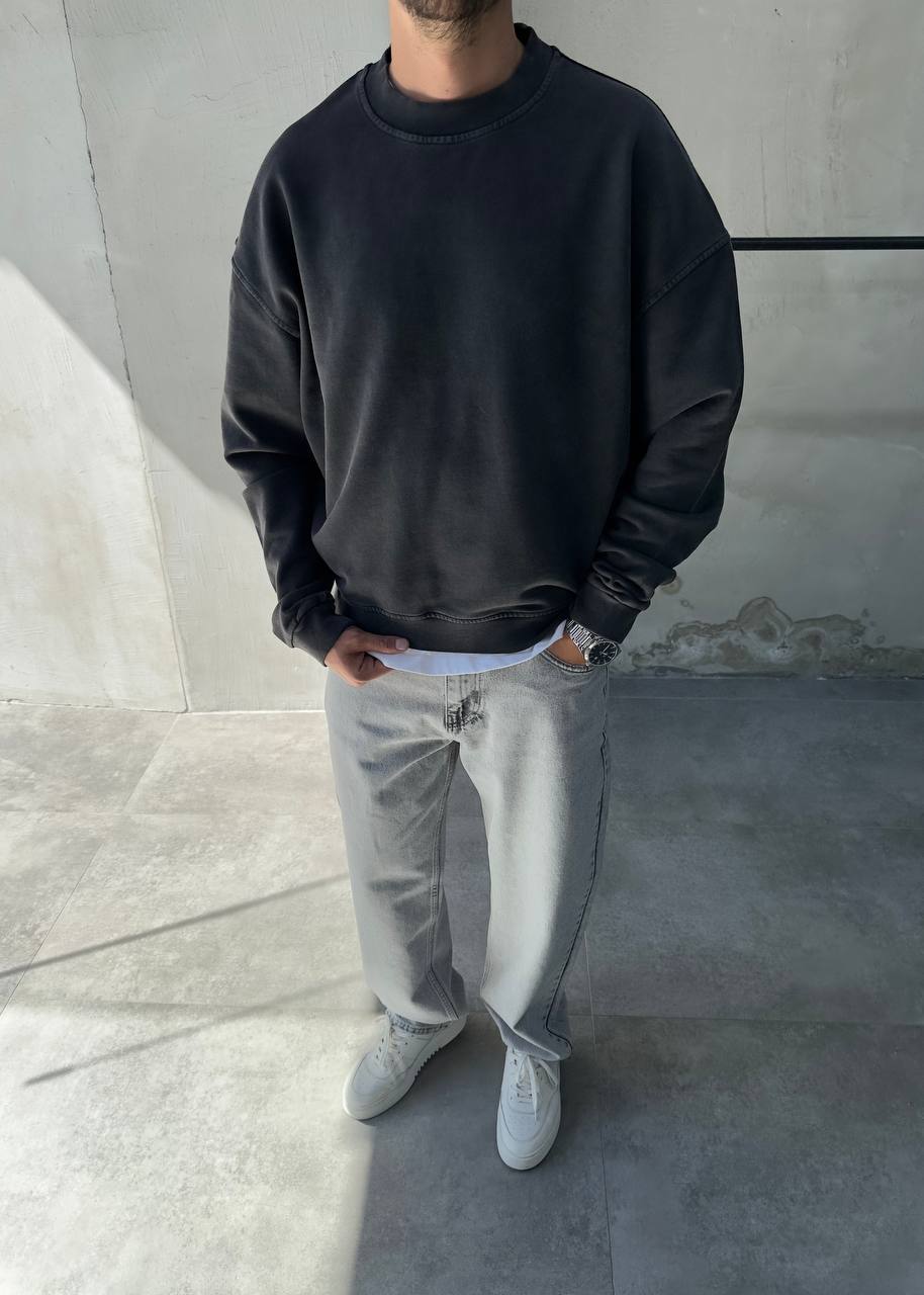 Мужской Базовый Черный Свитшот Оверсайз – Хлопковый Вареный
