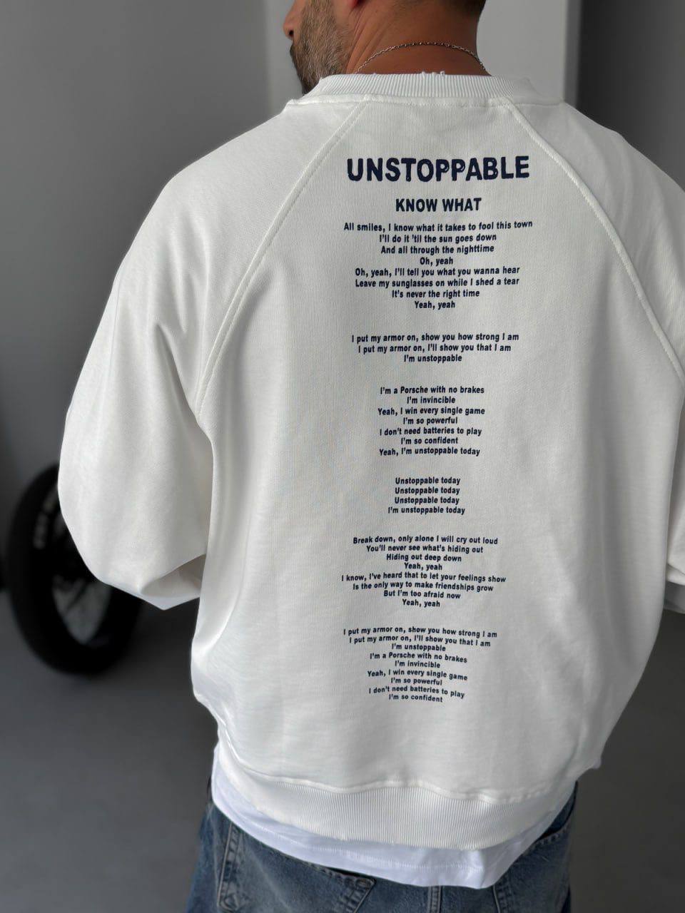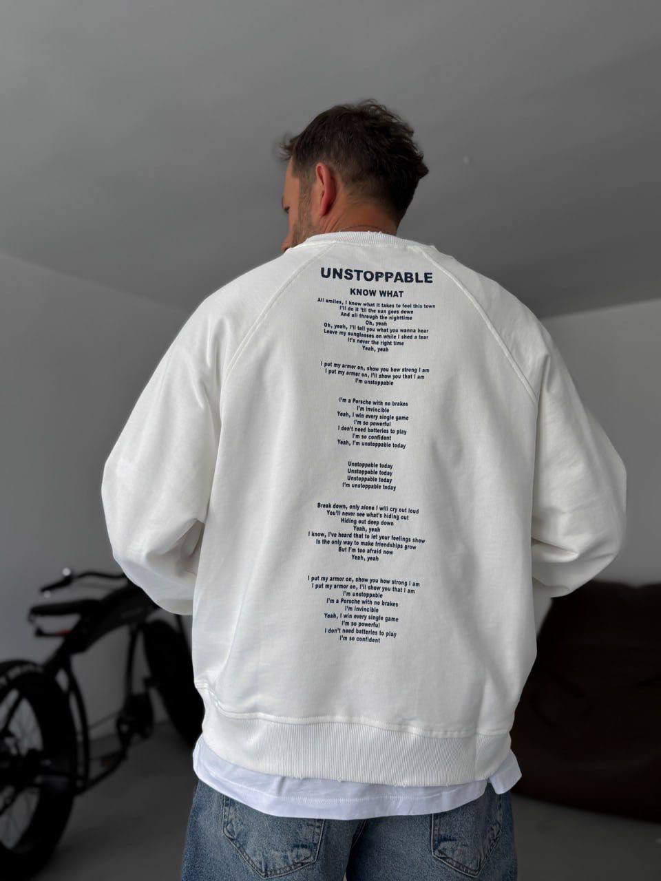 Мужской Белый Свитшот Оверсайз – Объемный с Надписями