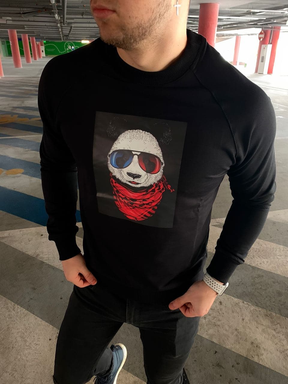 Мужской Черный Свитшот – Кофта с Принтом Панда