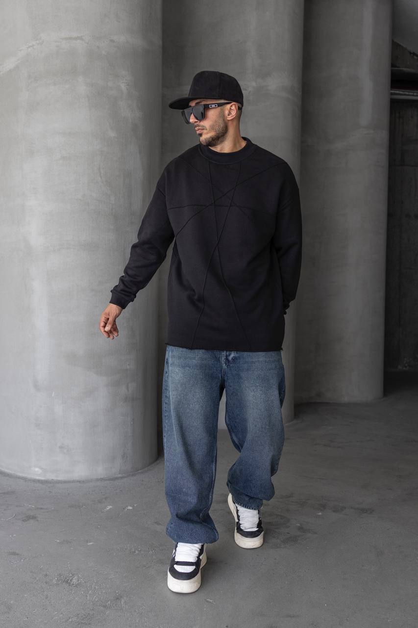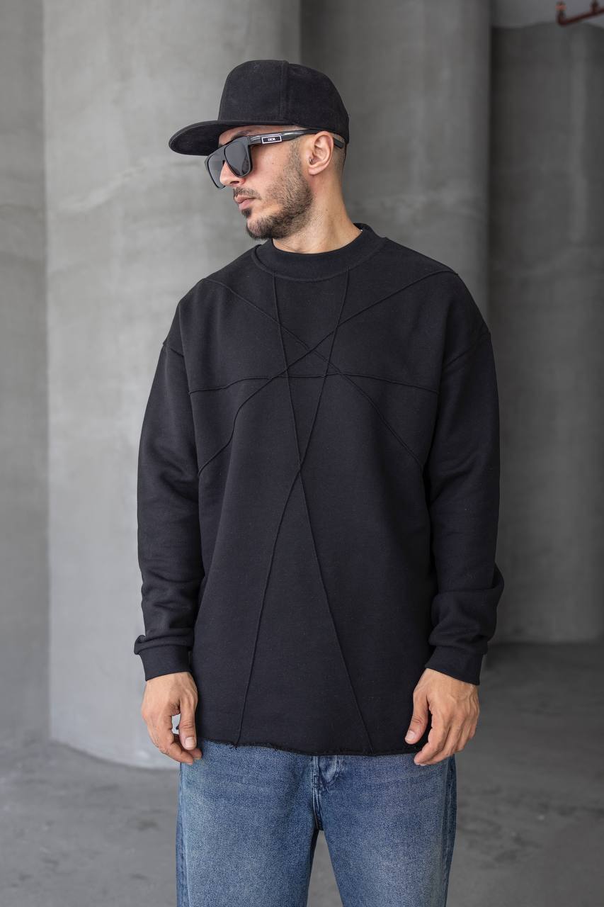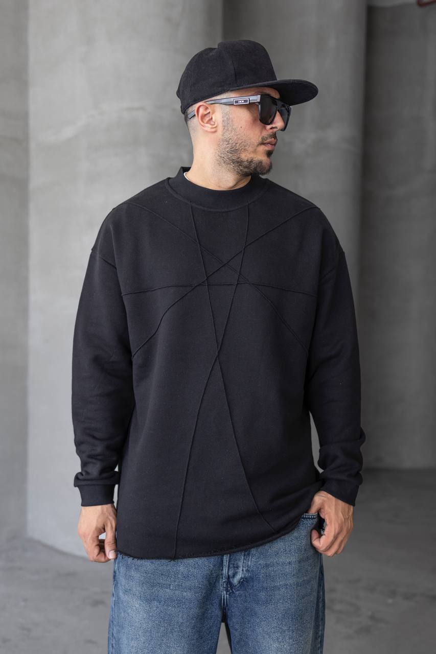 Мужской Черный Свитшот Оверсайз с Декоративными Швами