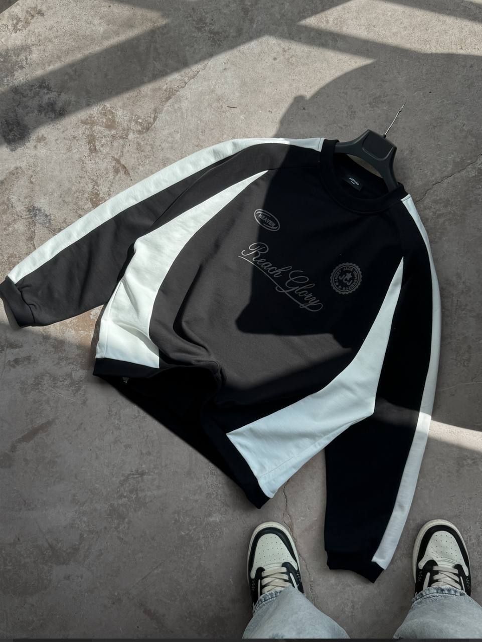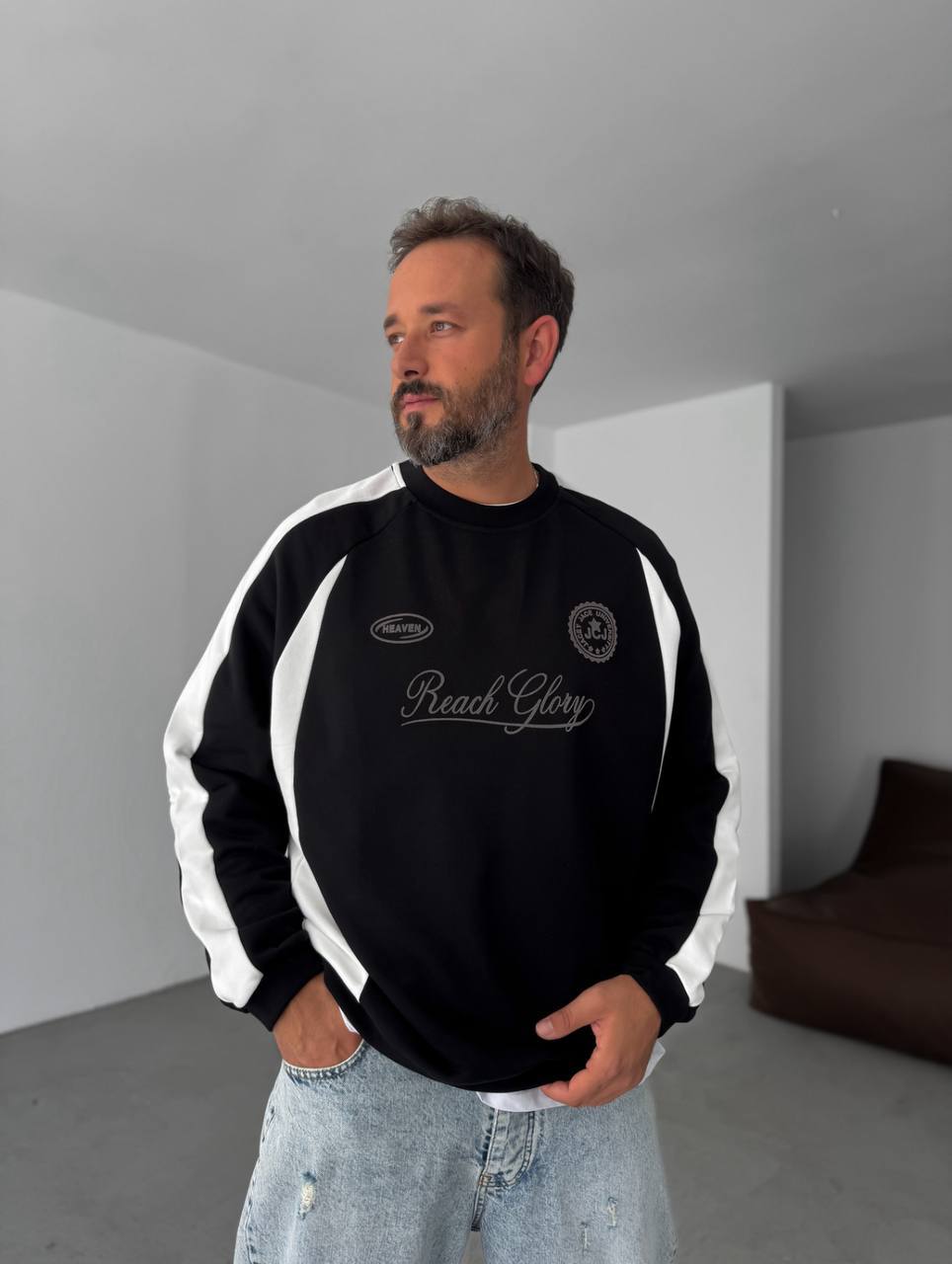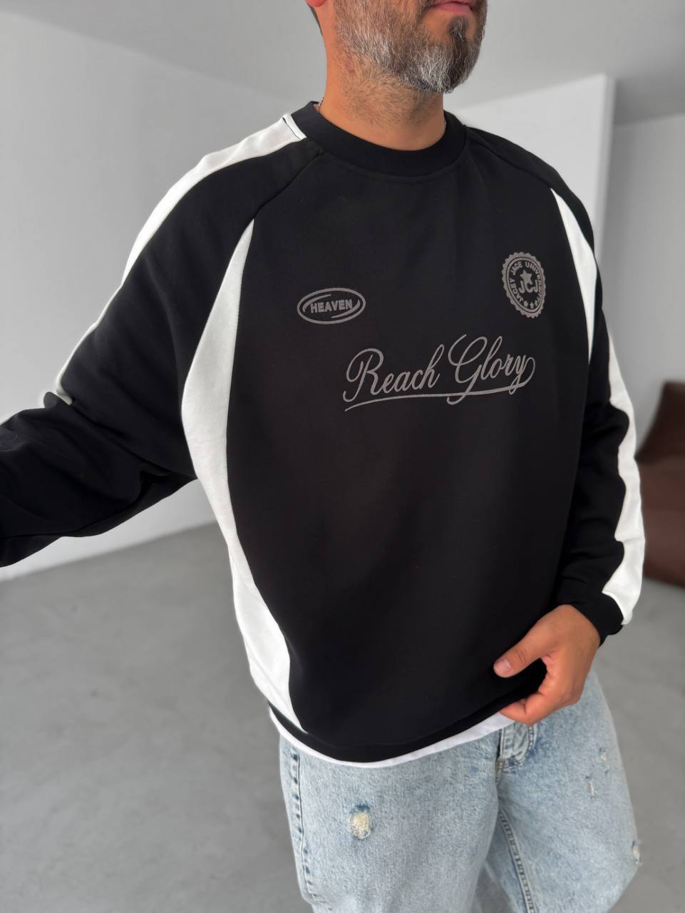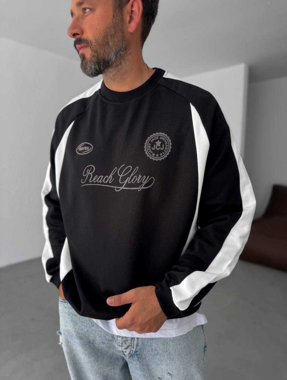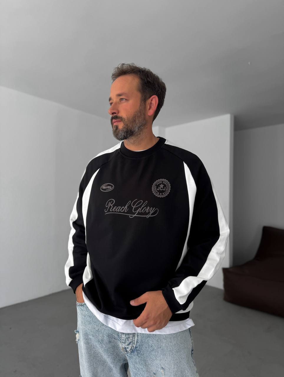 Мужской Черный Свитшот Реглан Оверсайз с Белыми Вставками