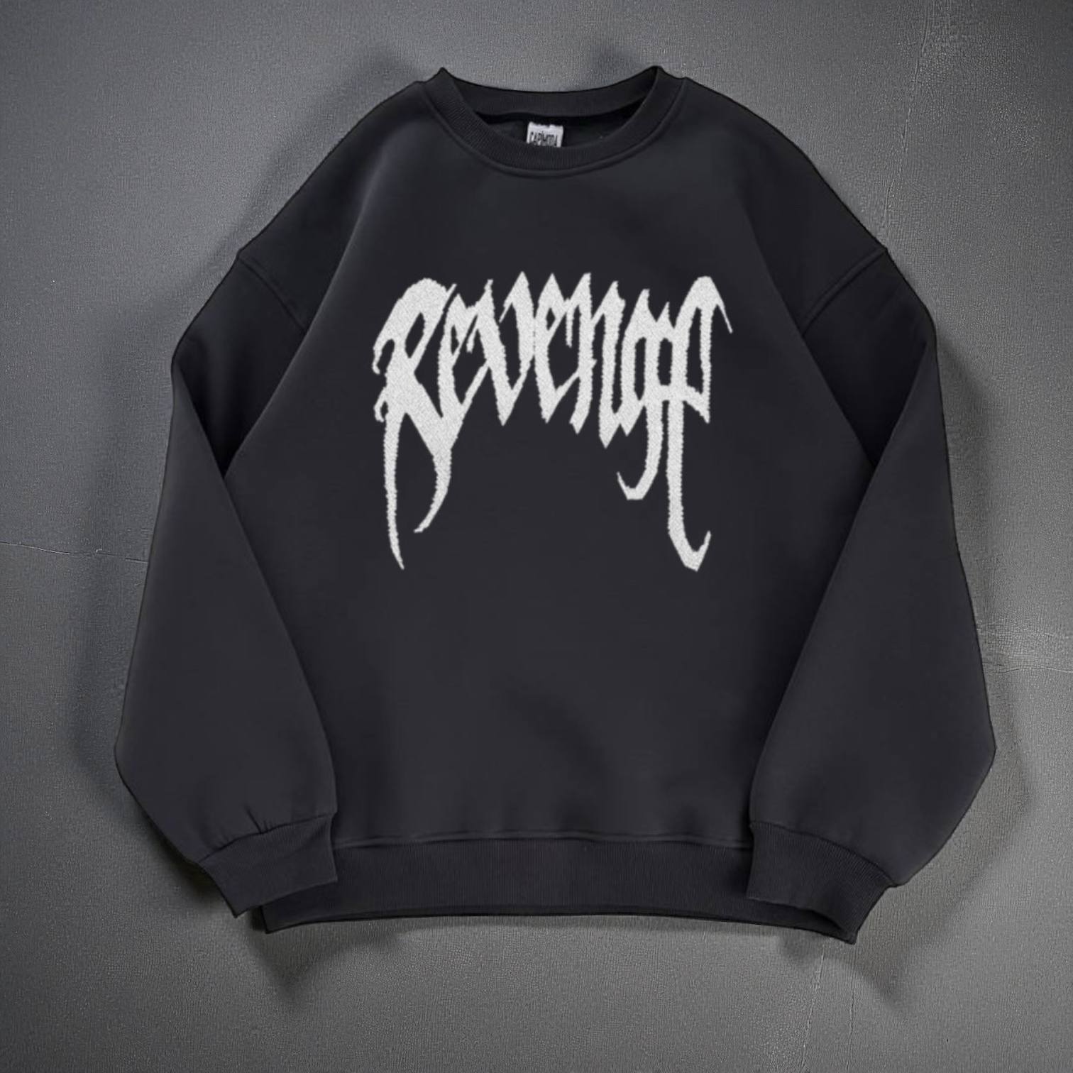 Мужской Графитовый Свитшот Оверсайз с Принтом – Утепленный на Флисе
