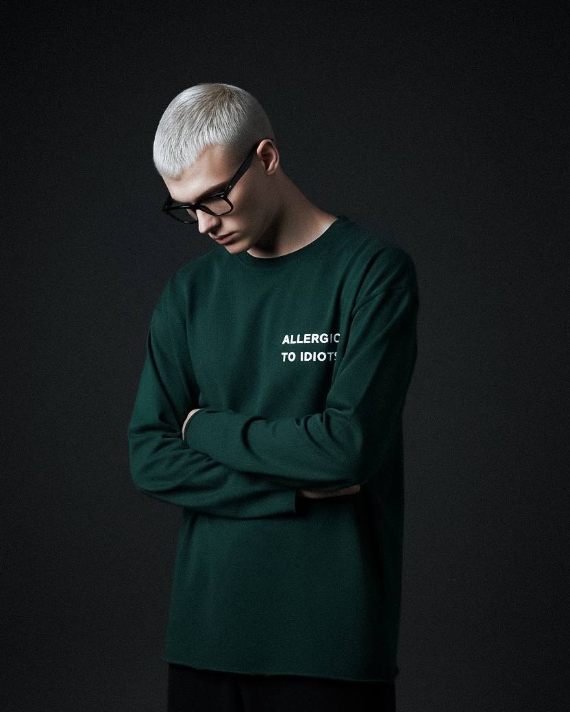 Мужской Хлопковый Зеленый Свитшот Петля Оверсайз с Надписью