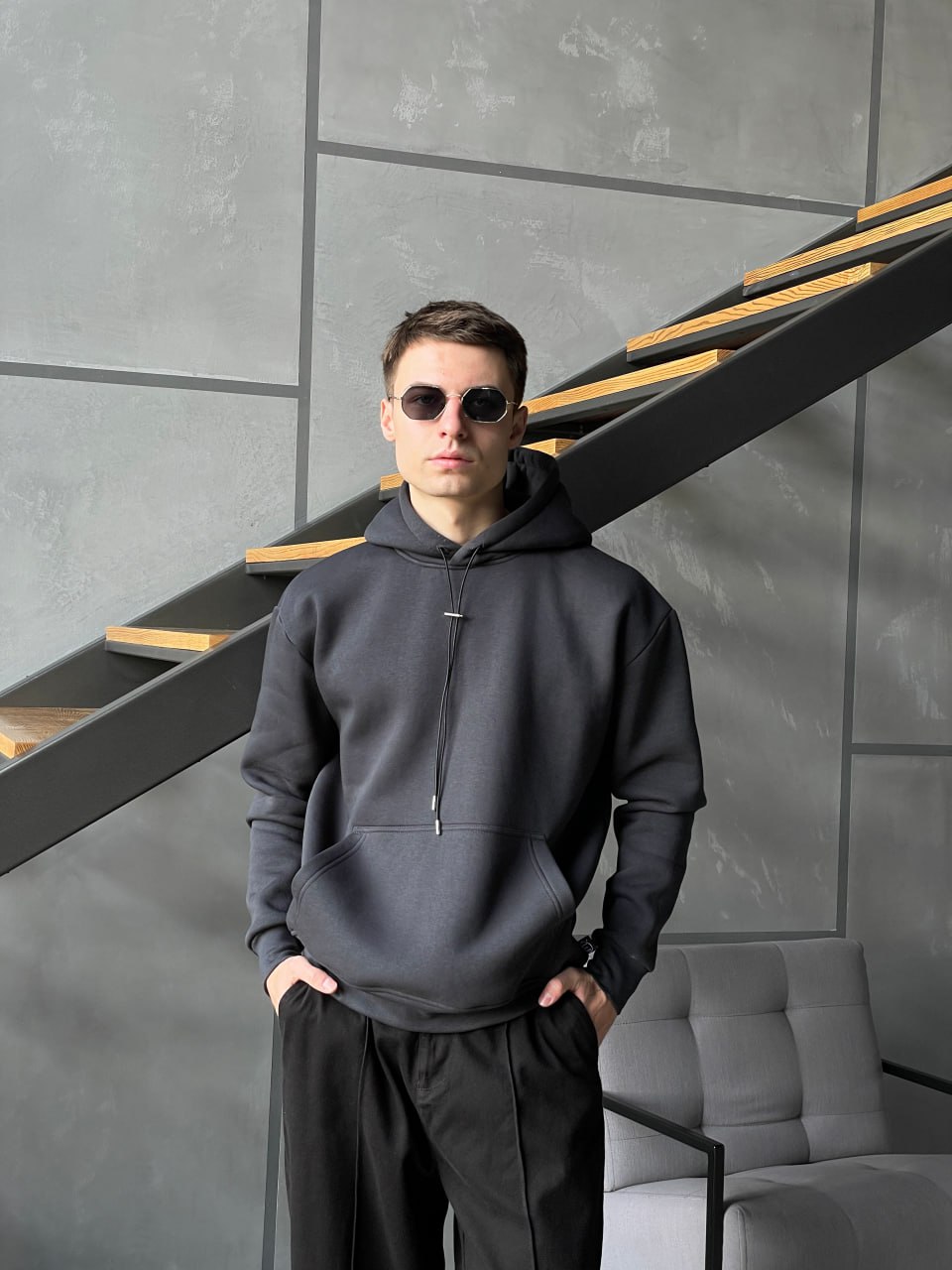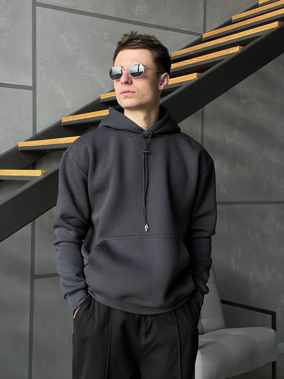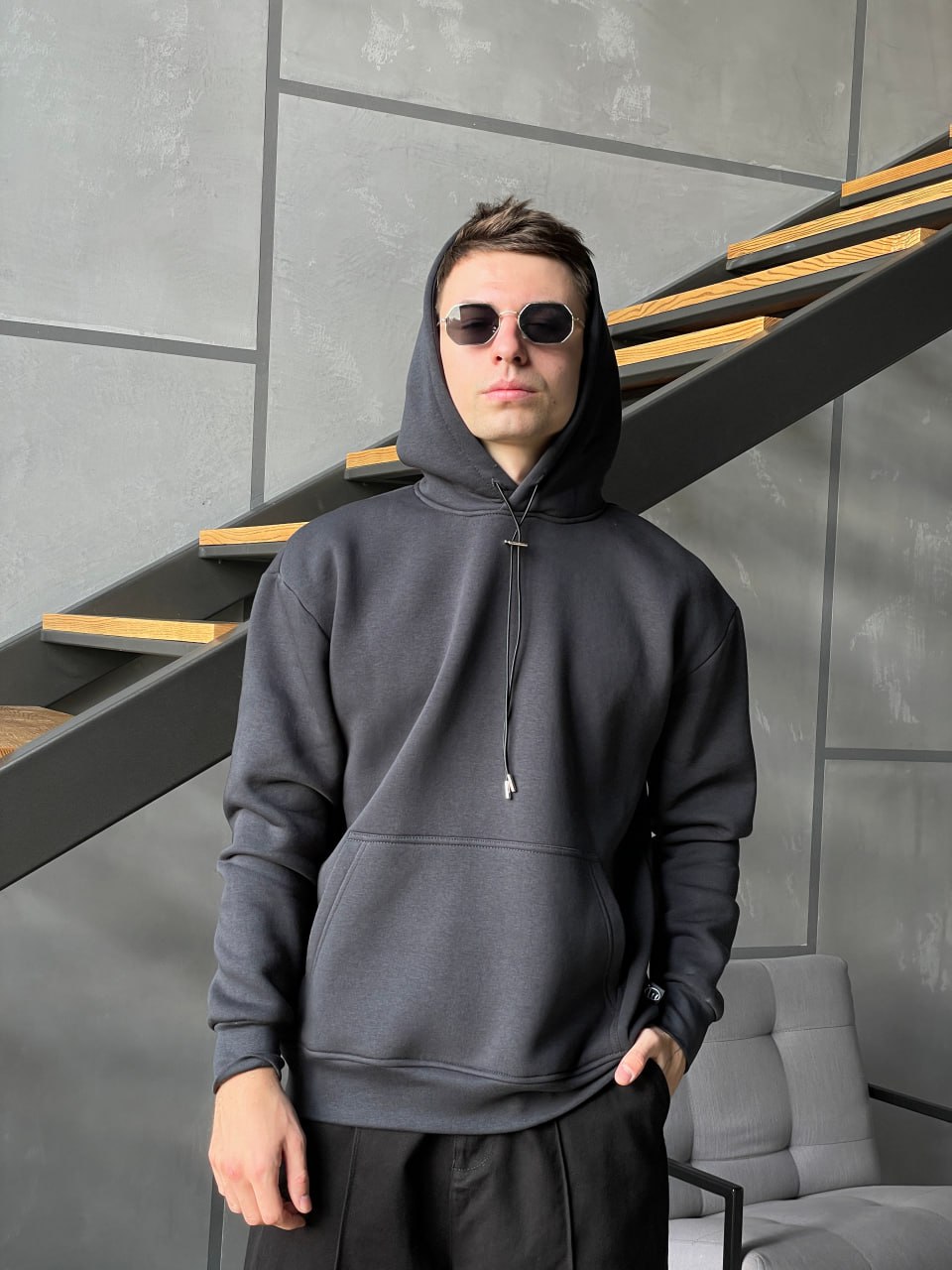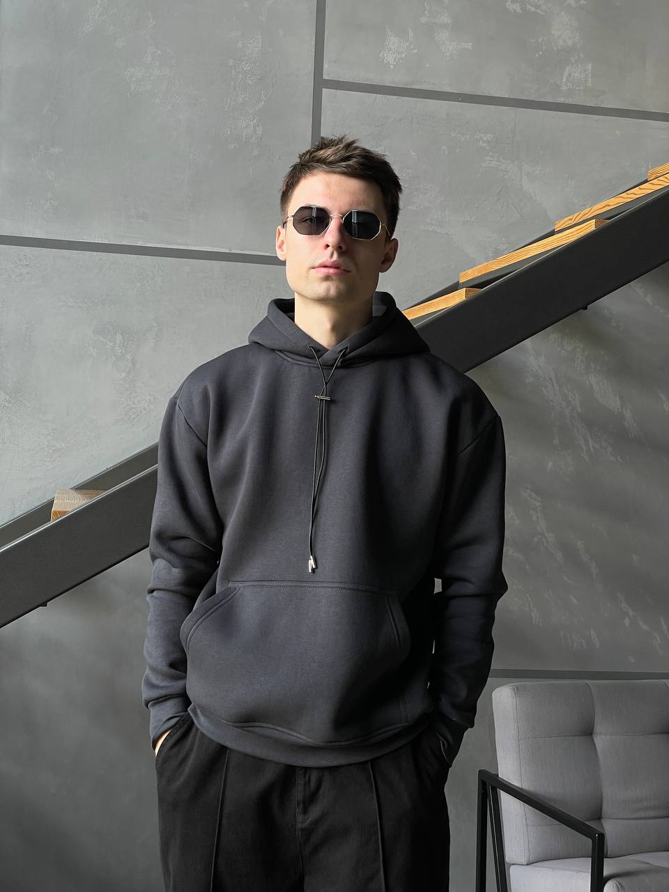 Мужской Худи в Графитовом Цвете Теплый на Флисе