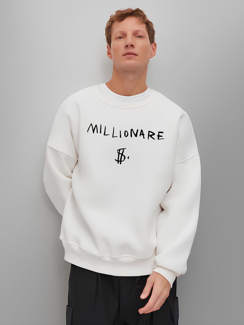 Мужской Объемный Белый Свитшот с Надписью “Millionare”