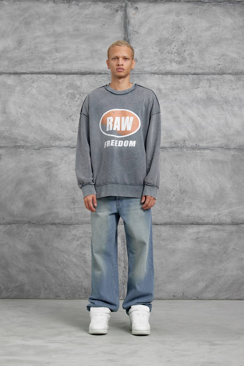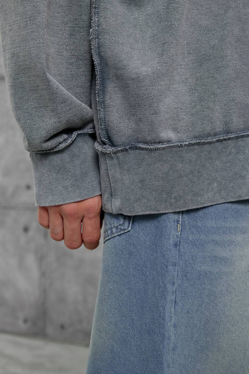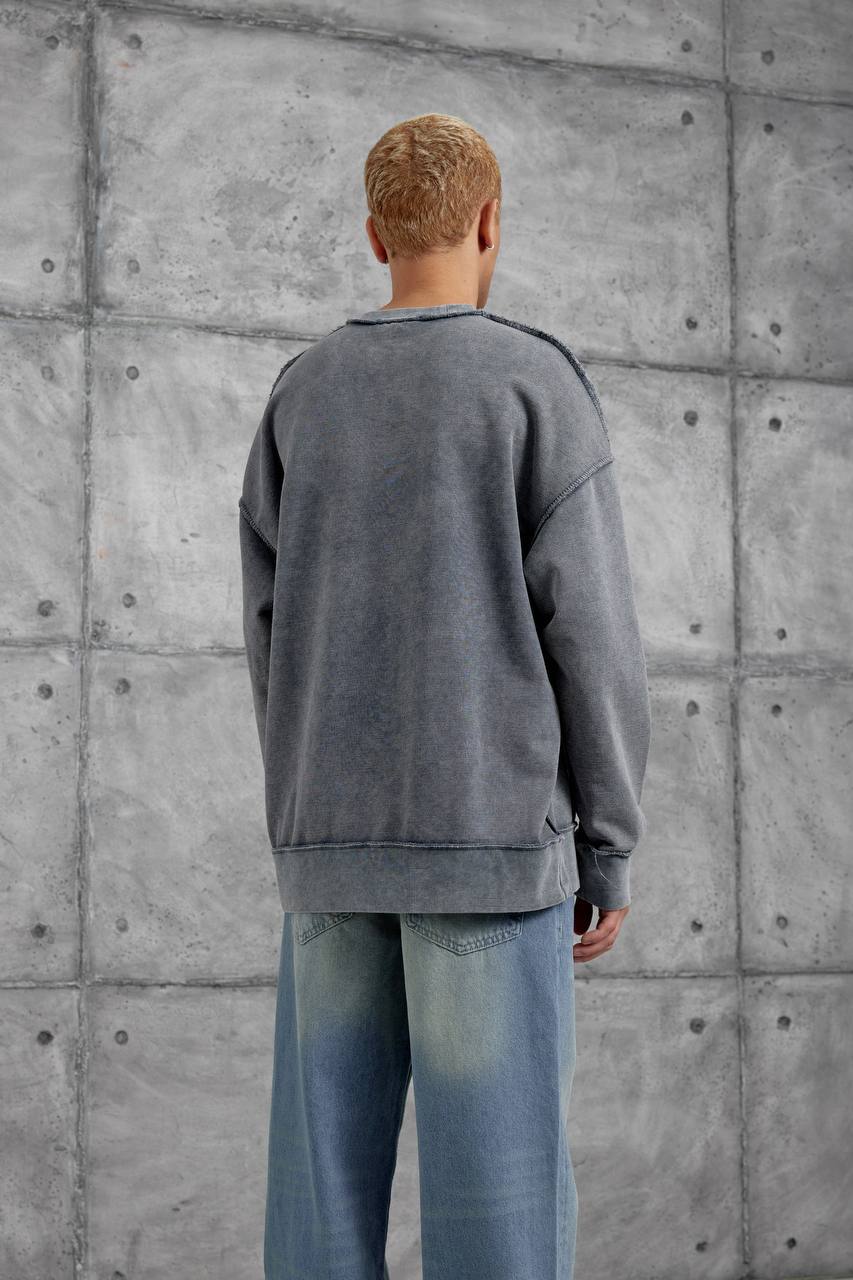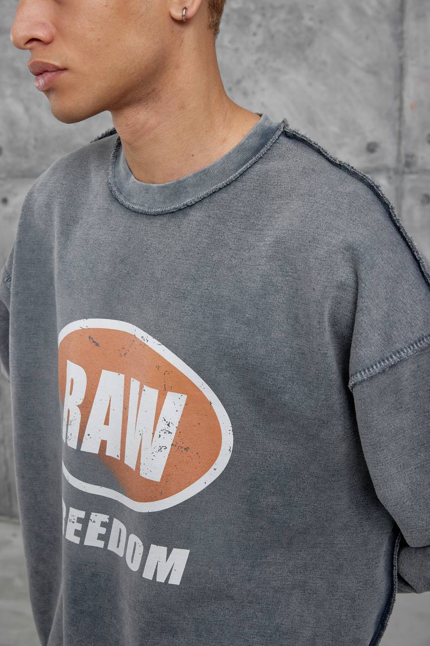 Мужской Оверсайз Свитшот Серый с Принтом – Хлопковый Вареный со Швами Наружу