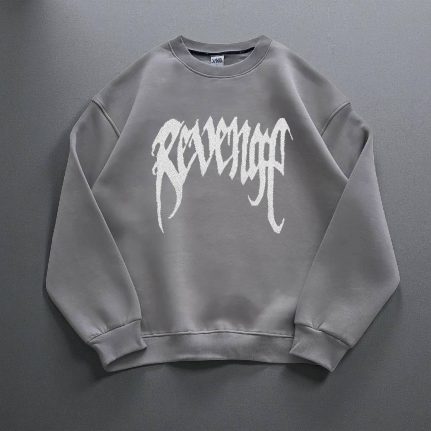 Мужской Серый Свитшот Оверсайз с Принтом – Утепленный на Флисе