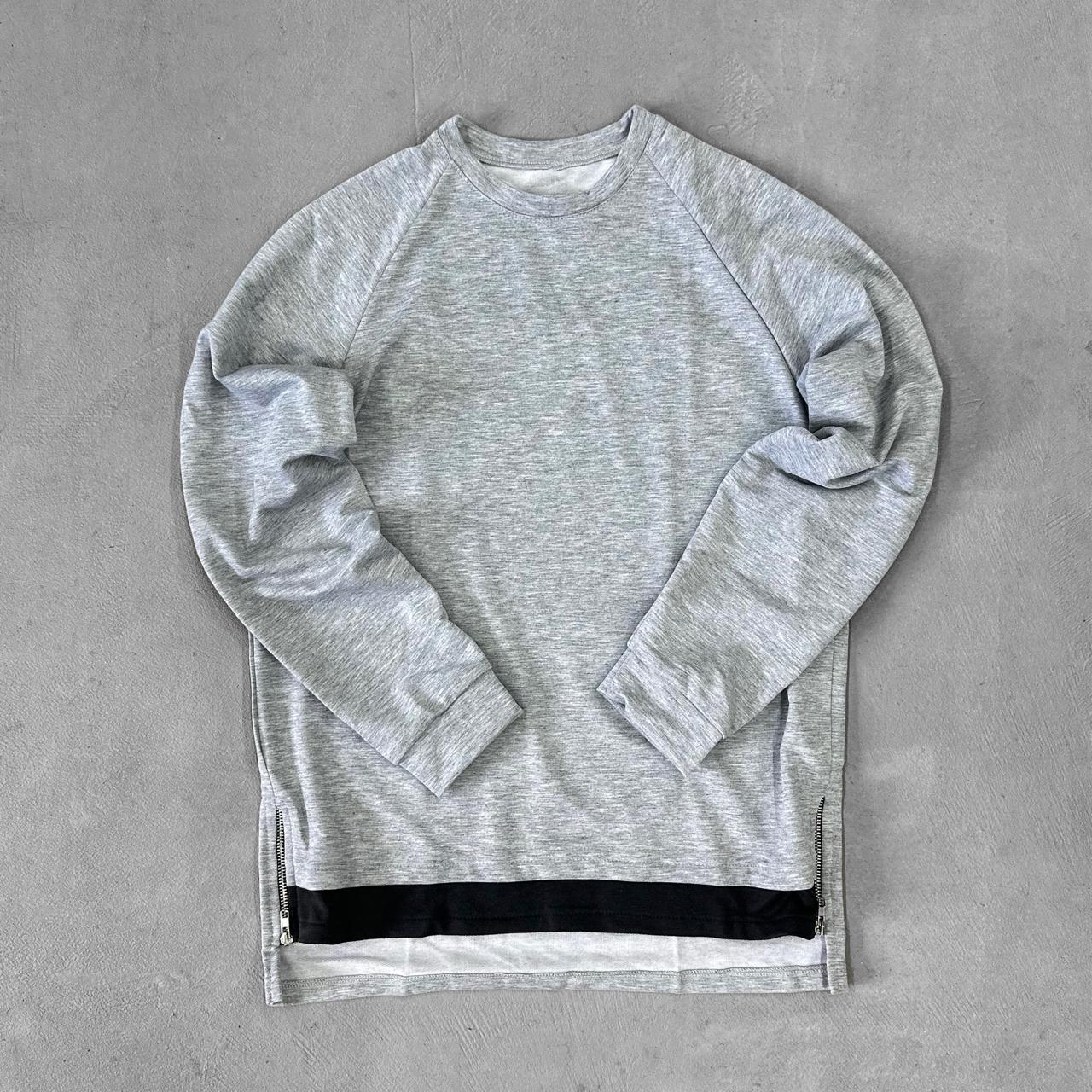 Мужской Серый Свитшот Свободного Кроя со Змейками по Бокам