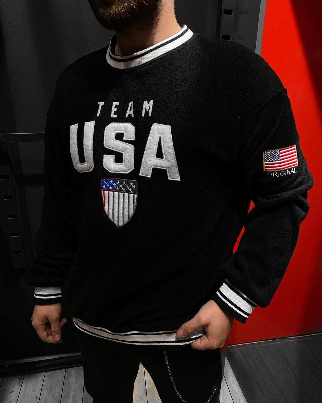 Мужской Теплый Флисовый Черный Свитшот Оверсайз – Мягкий с Принтом Вышивкой
