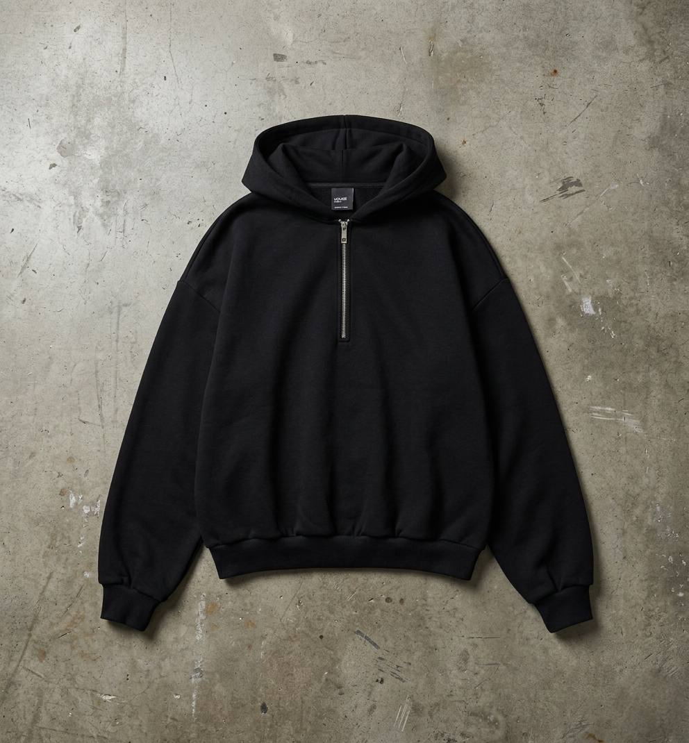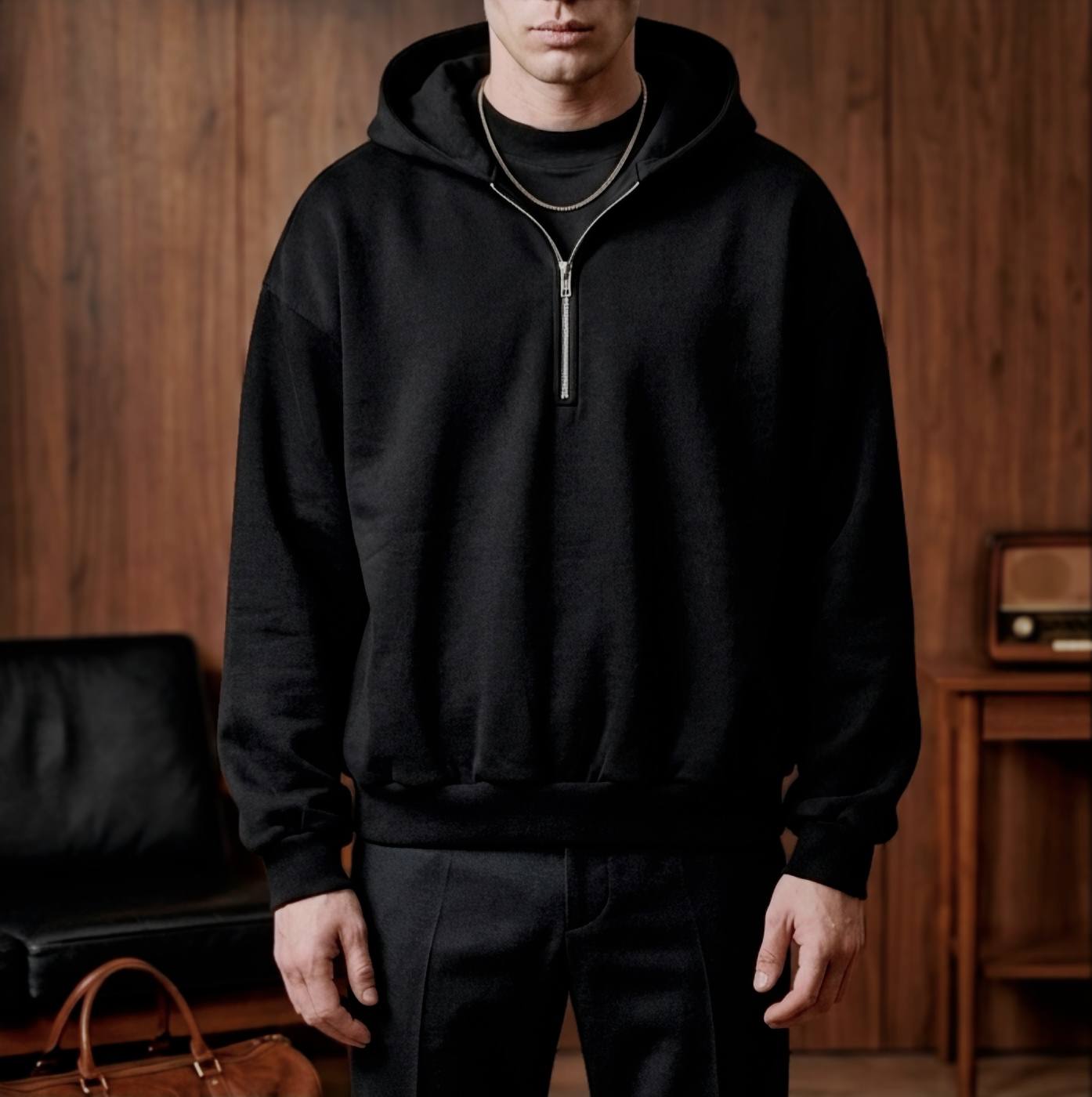 Мужская Базовая Черная Кофта Свободного Кроя с Капюшоном на Замке