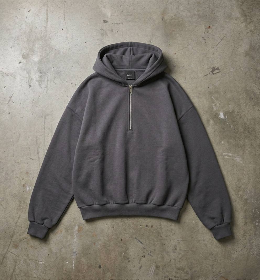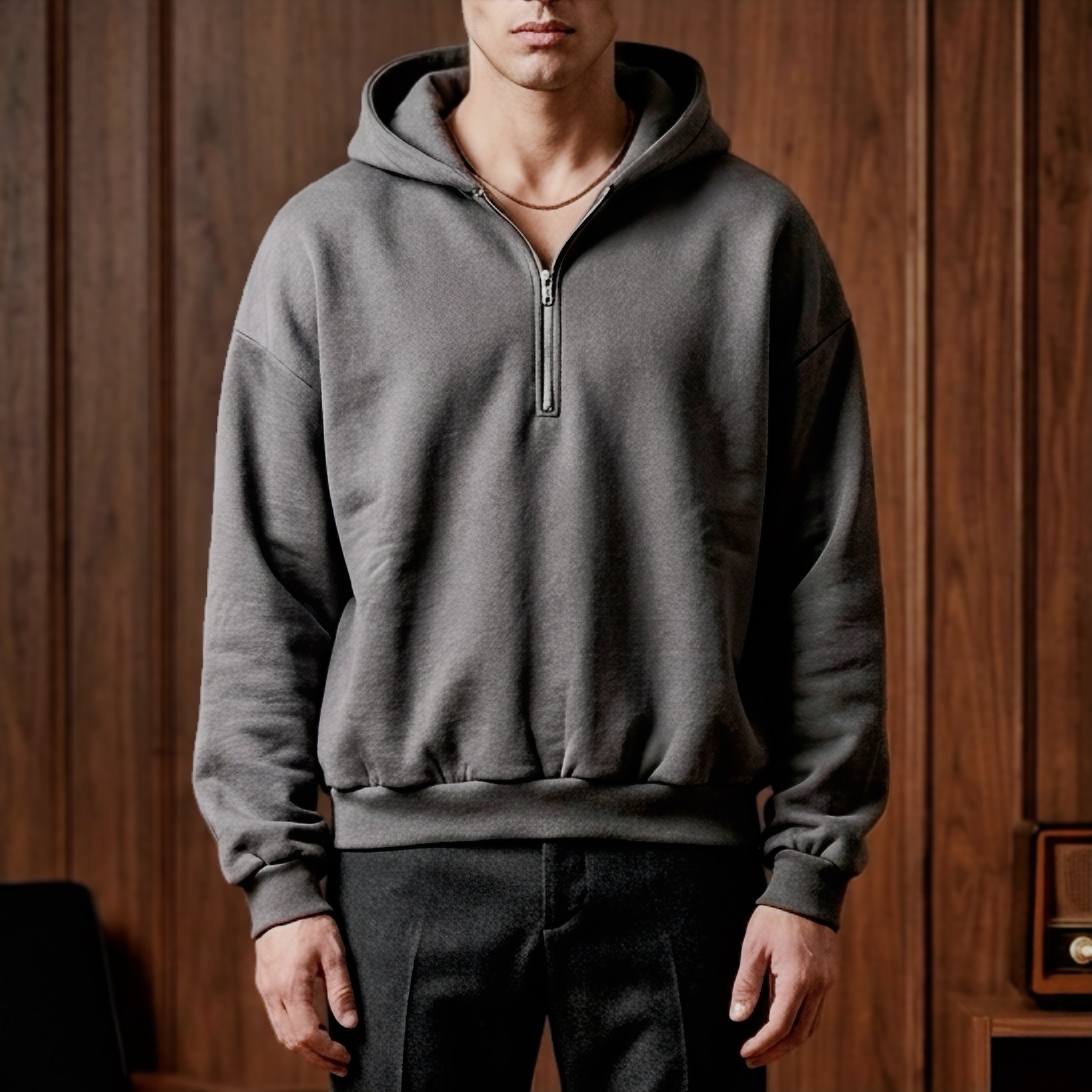 Мужская Базовая Графитовая Кофта Свободного Кроя с Капюшоном на Замке