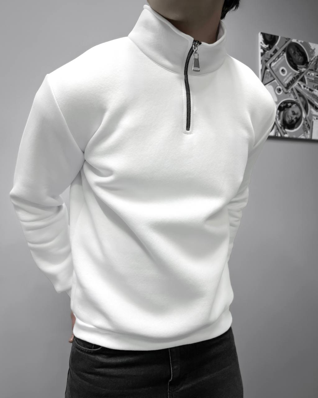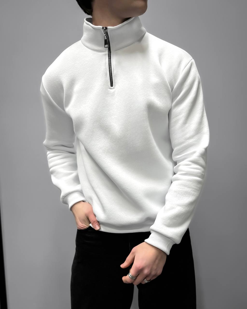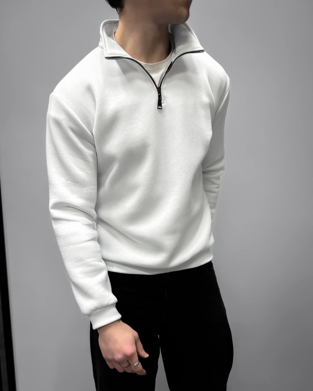 Мужская Белая Оверсайз Кофта под Горло – Свободного Кроя Теплая с Начесом