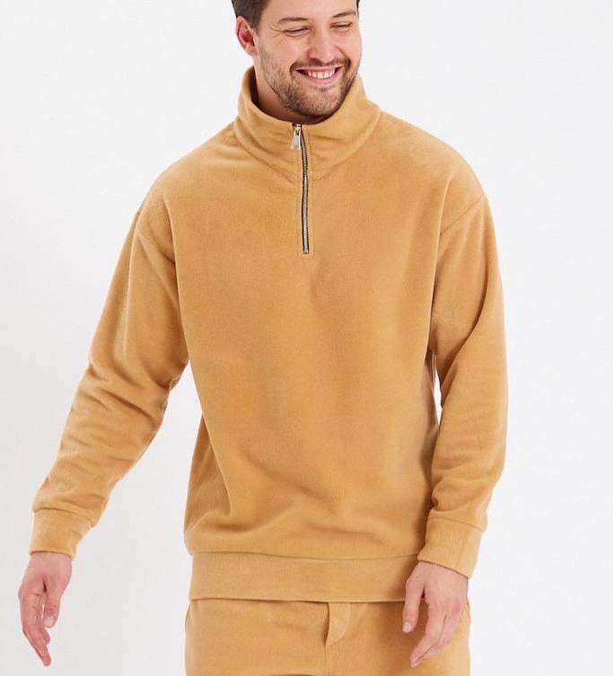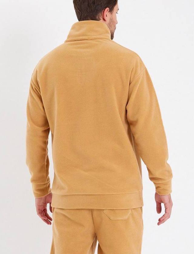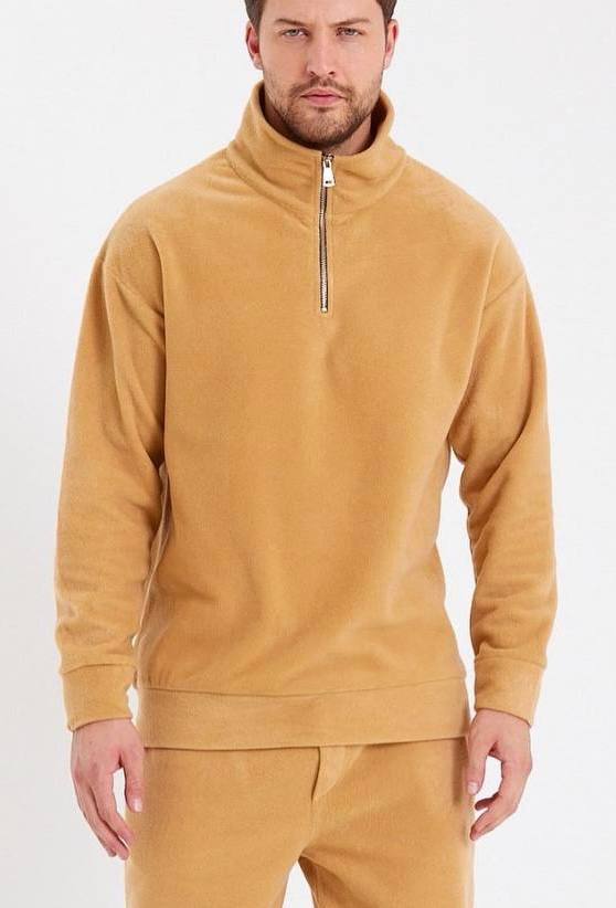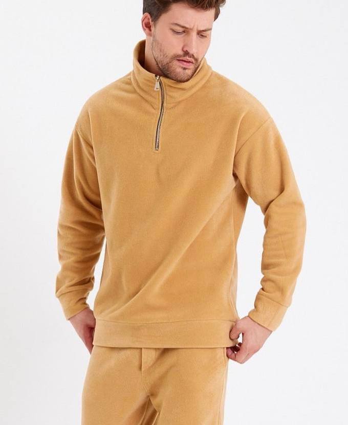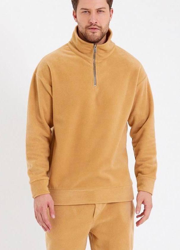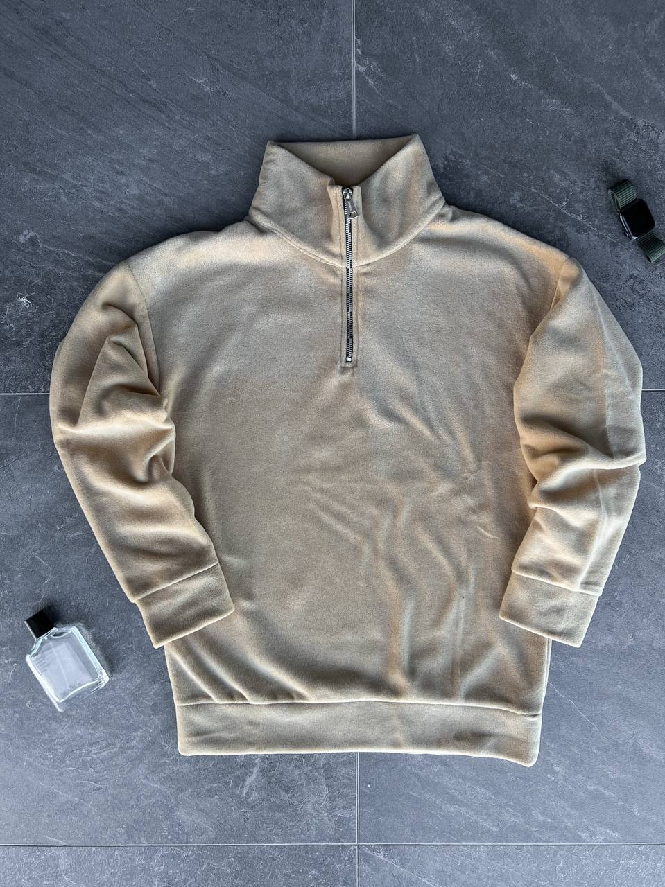 Мужская Бежевая Флисовая Кофта Свитшот с Воротником под Горло с Замочком