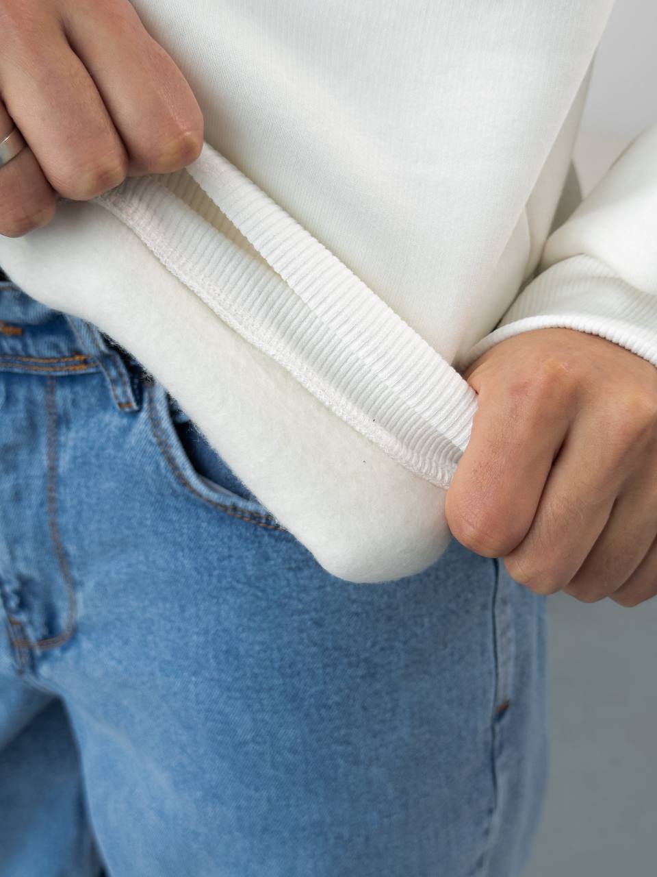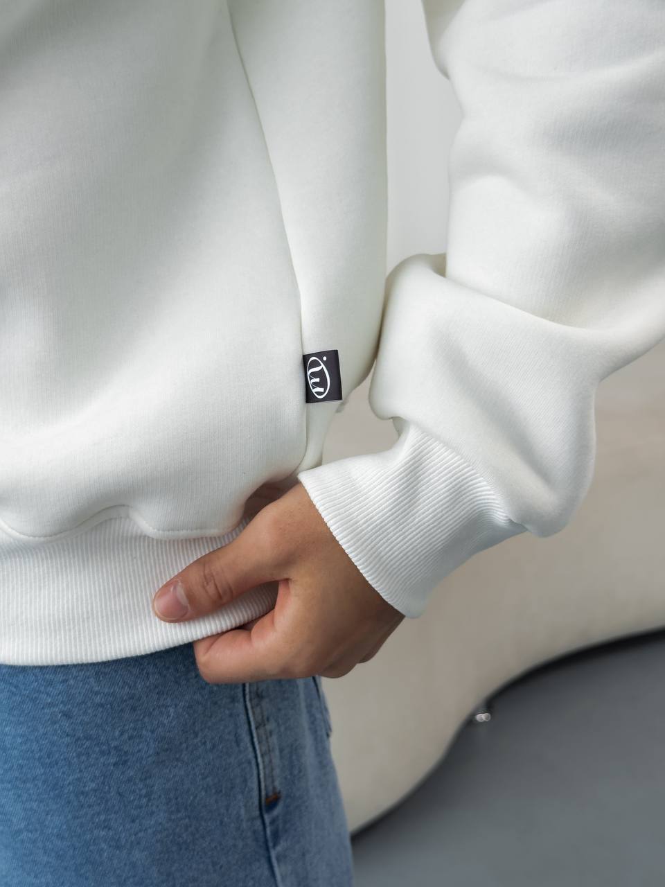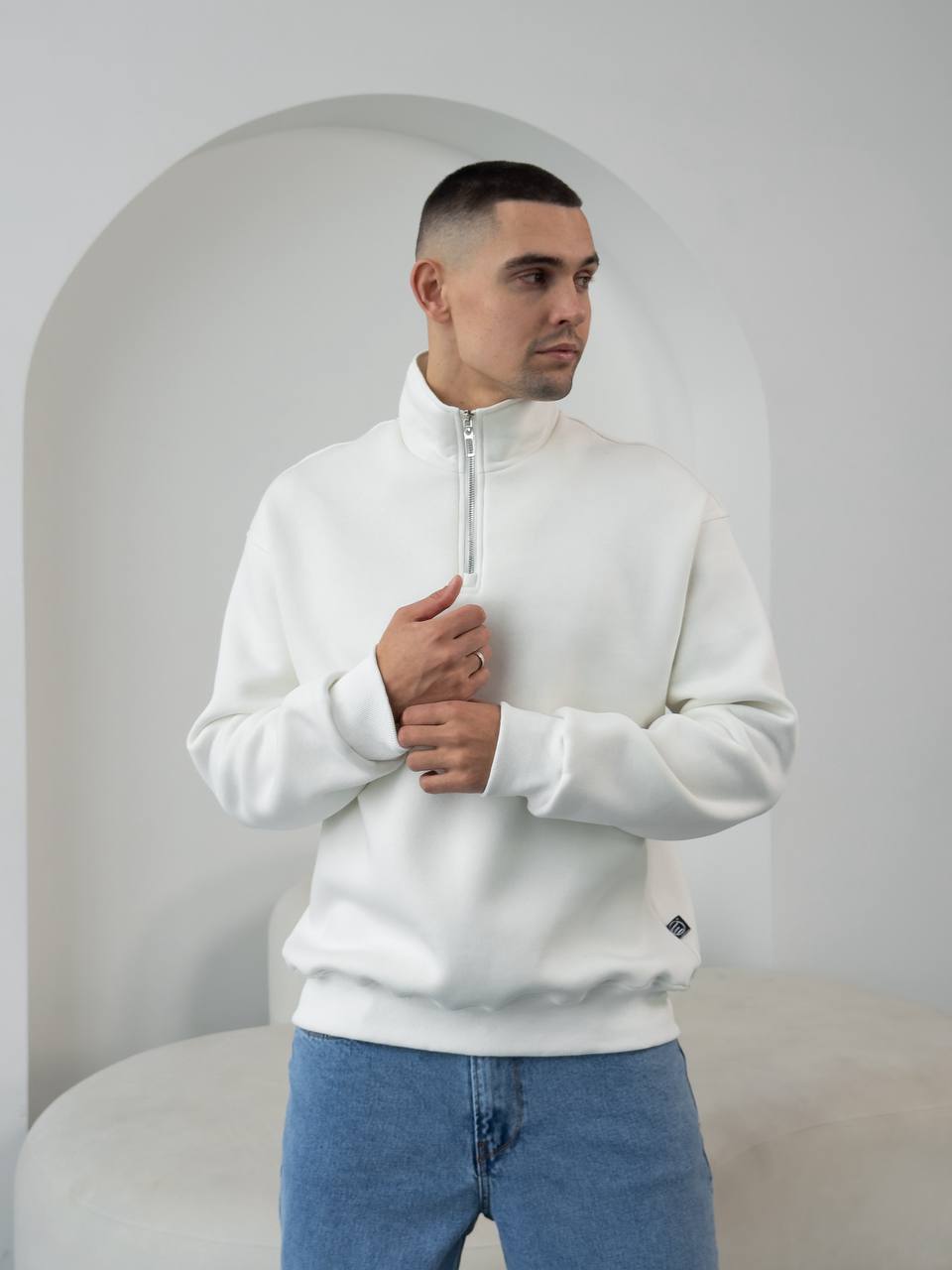 Мужская Хлопковая Белая Кофта под Горло на Флисе с Замком на Воротнике